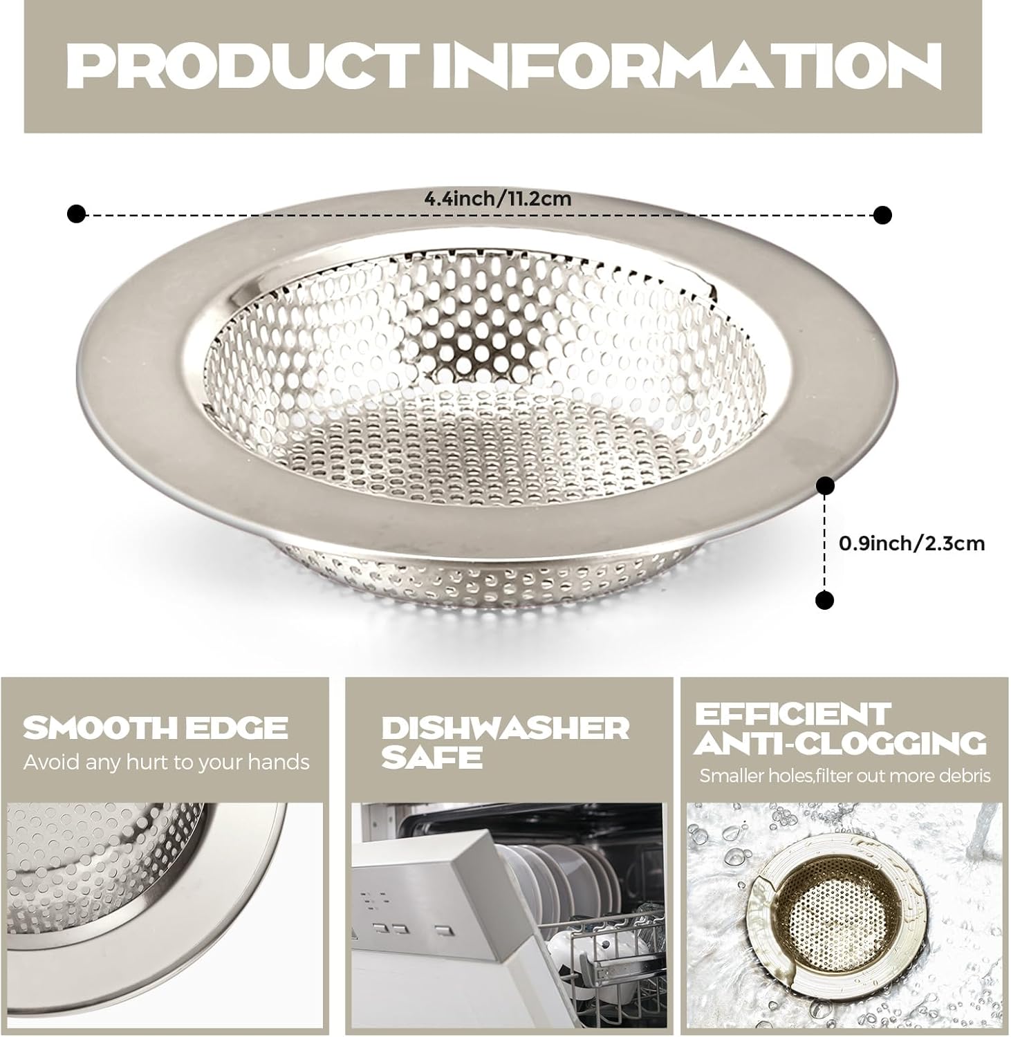 - Suitable Size for Most Family: each sink strainer measures about 4.4 inches/ 11.2 cm in diameter, suitable for conventional 3 1/2 inch sink drain pipe in most households, suitable for your basin in most rooms