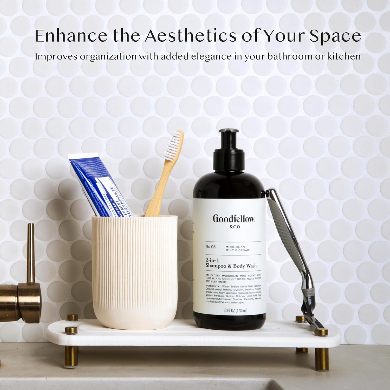 - Perfect Gift for Holidays and More β Its elegant white tray with gold tone legs and functional quick-dry surface make this organizer a thoughtful choice for Christmas, Thanksgiving, housewarmings, weddings, or bridal showersβideal for anyone who enjoys a neat and stylish kitchen or bathroom