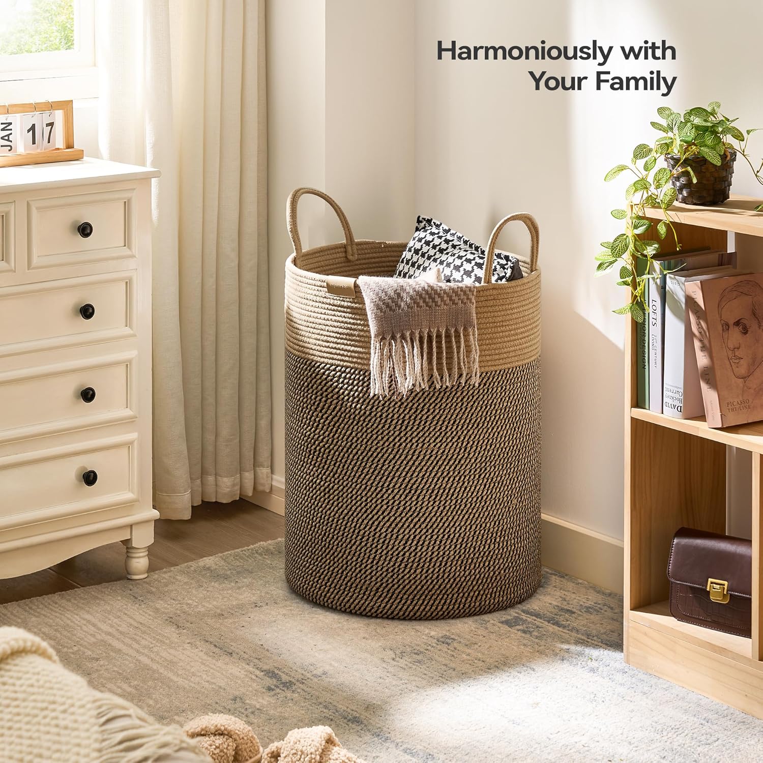 - Versatile & Stylish: Featuring a trendy color-block design, this nursery laundry hamper complements any home decor style and can be used in various settings. With its convenient handles, you can easily move the blanket bin around wherever it's needed.