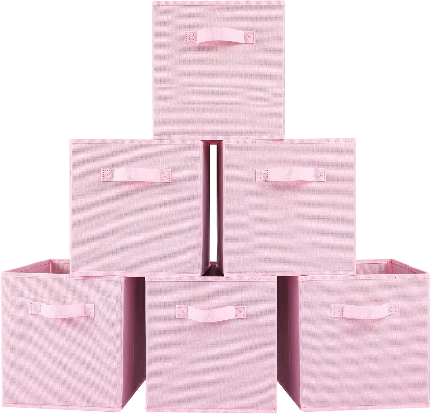 - Perfect Storage Solution: 6-piece set, pink Collapsible cube storage bin, Provides an attractive, lightweight solution to many storage needs, making your room decor very pretty while keeping your household items neat and organized.