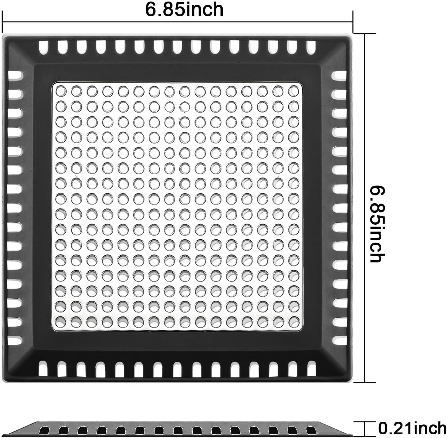 - The shower drain hair catcher is measured 6.85 L x 6.85 W (inches), fit for drain below 6 inch,square shape covers both round and square style shower drains,perfect for shower drain. Attention: pls measure your drain before purchase.