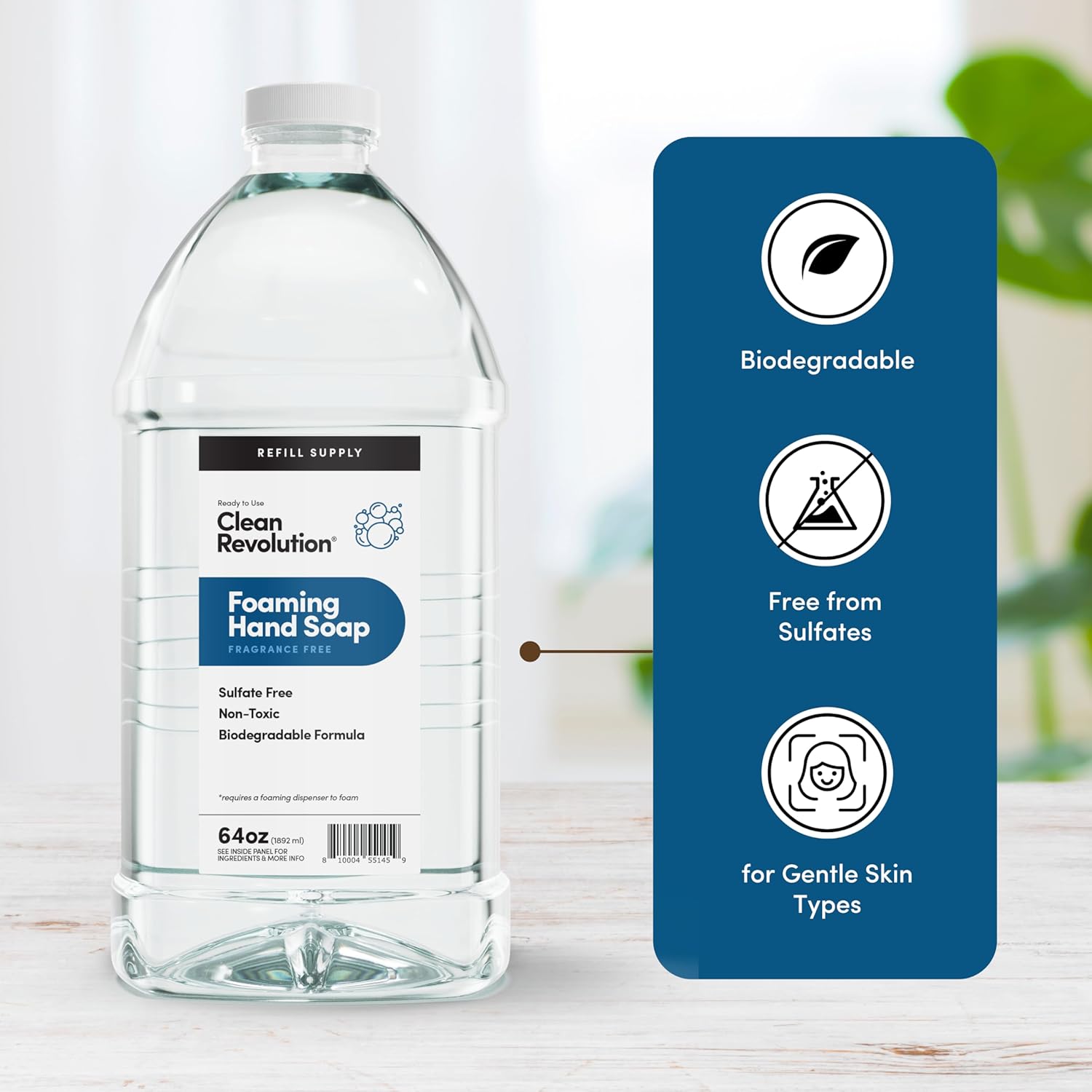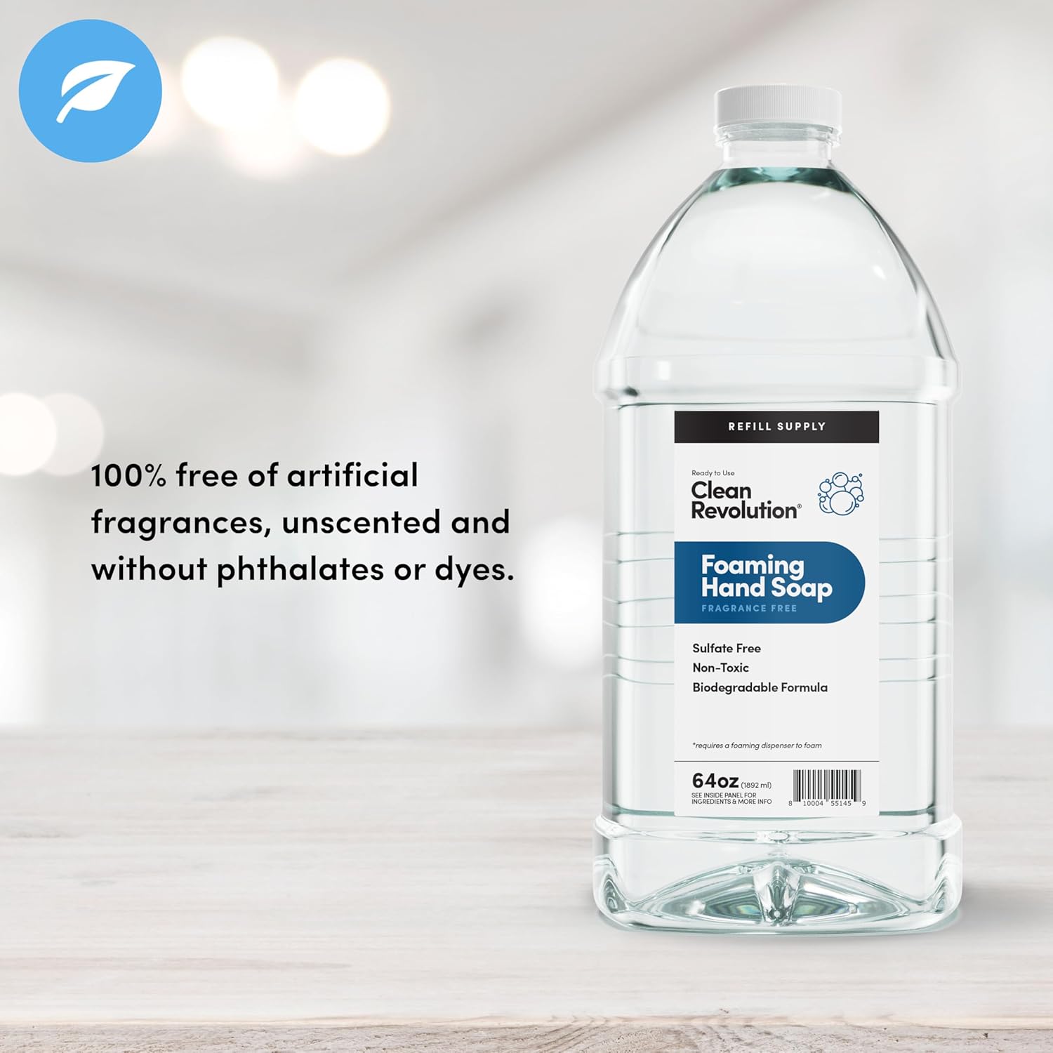 Clean Revolution Foaming Hand Soap Refill Supply Container, Ready to Use Formula, Fragrance Free, 64 Fl Oz (Pack of 1)