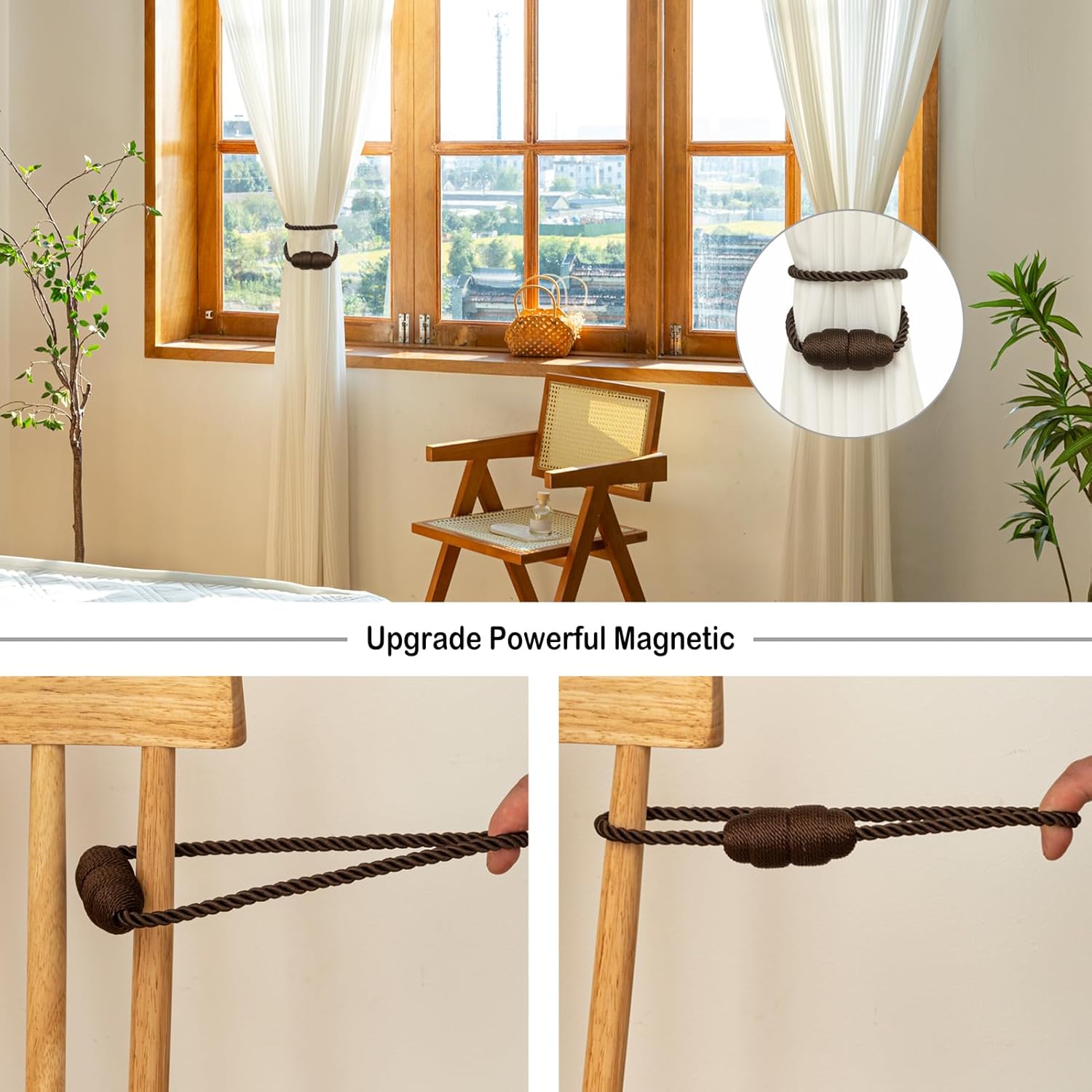 Magnetic Curtain Tiebacks Rope Curtain Tie Backs for Curtains 6 Pack Curtain Holders for Drapes Decorative Window Curtain Holdbacks, Coffee