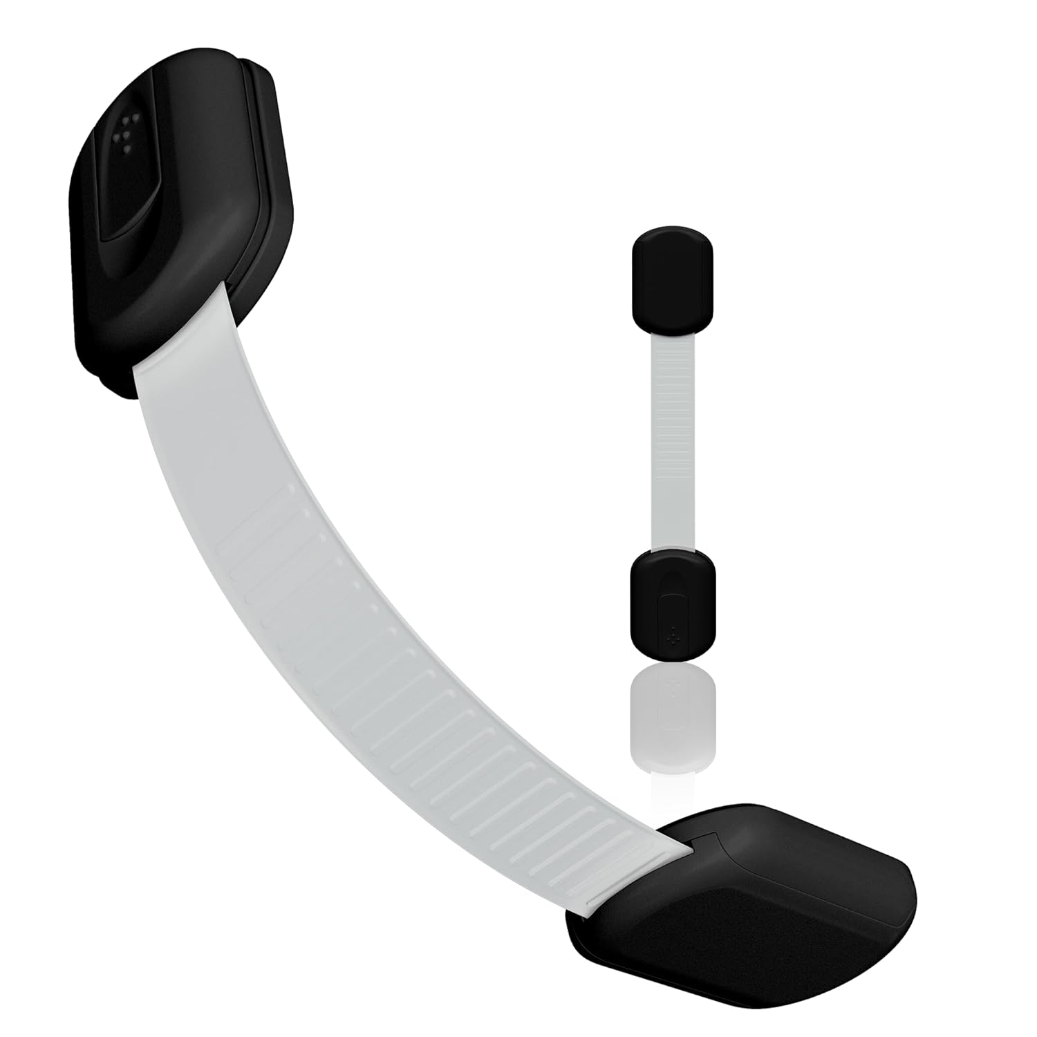 • What You Get: 2 multi-purpose cabinet locks that has a high grade 3M adhesive. Flexible strap means you can bend around items from toilet seats to fridges