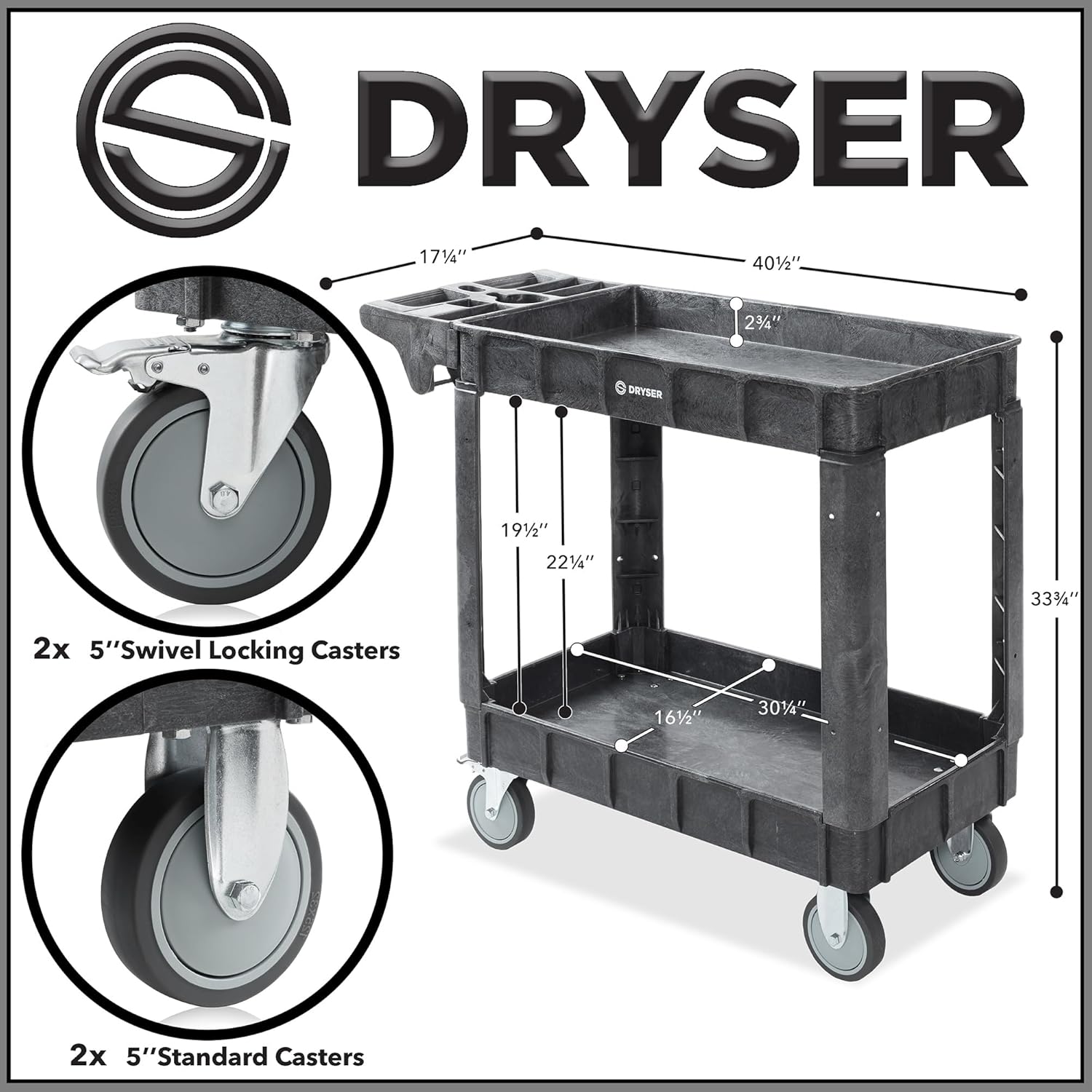 Dryser Utility Cart with Wheels, 40" x 17" Heavy Duty 550 lb. Capacity with Shelves - 2 Tier Rolling Cart with Two 5" Swivel Casters for Warehouse, Garage, Cleaning