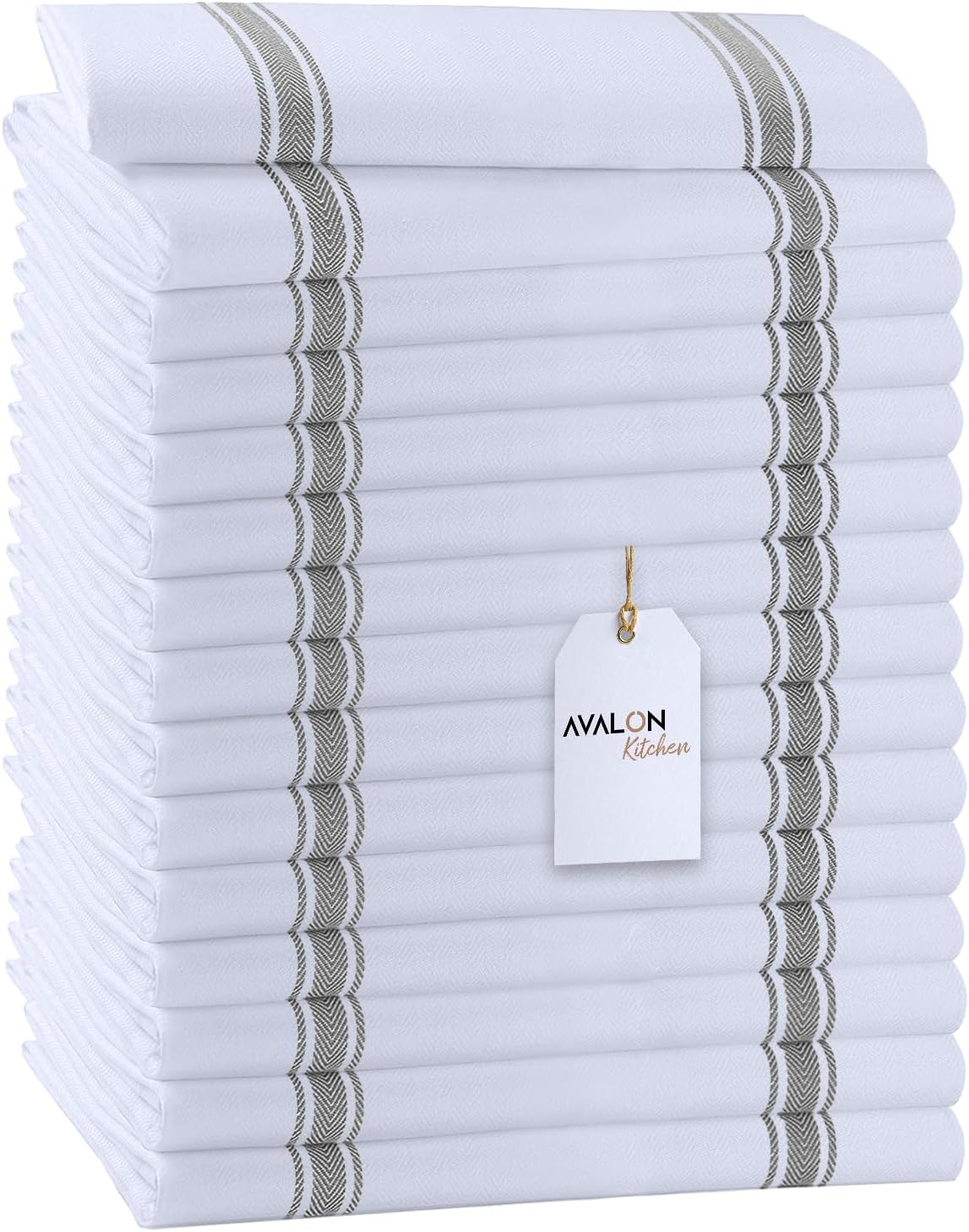 - SOFT AND ABSORBENT – These kitchen towels are made from 100% ring-spun cotton to assist with all your household and kitchen chores. The dish towels are carefully designed with a herringbone weave which gives a soft feel and absorbency to dry effectively.
