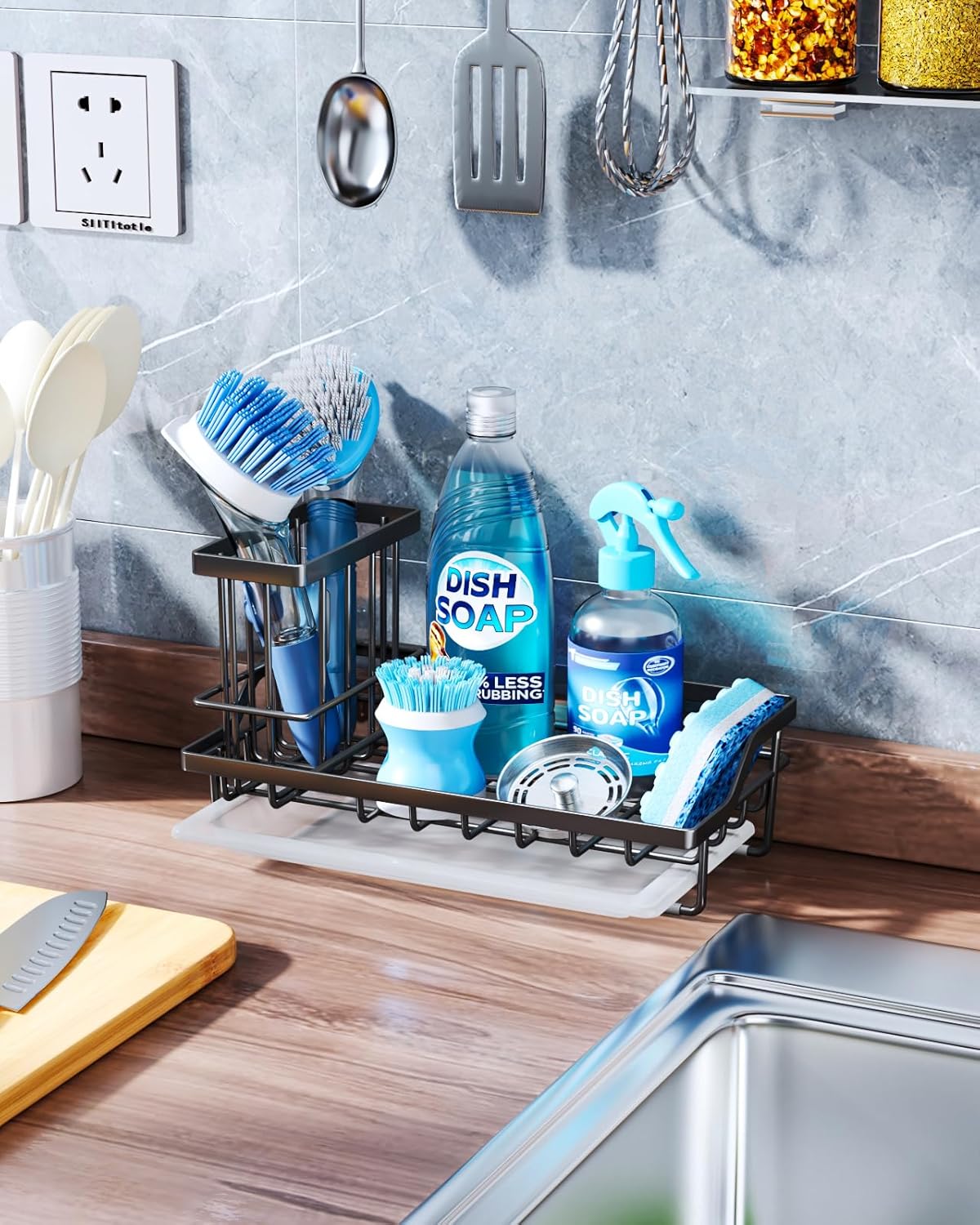 - [Counters Tidier - Sponges Drier]: This sponge holder is perfect to organize your sponges, dish soap and hand soap in on place. Storing sponges and brush upright helps them dry quicker, useful kitchen sink caddy for all kitchen