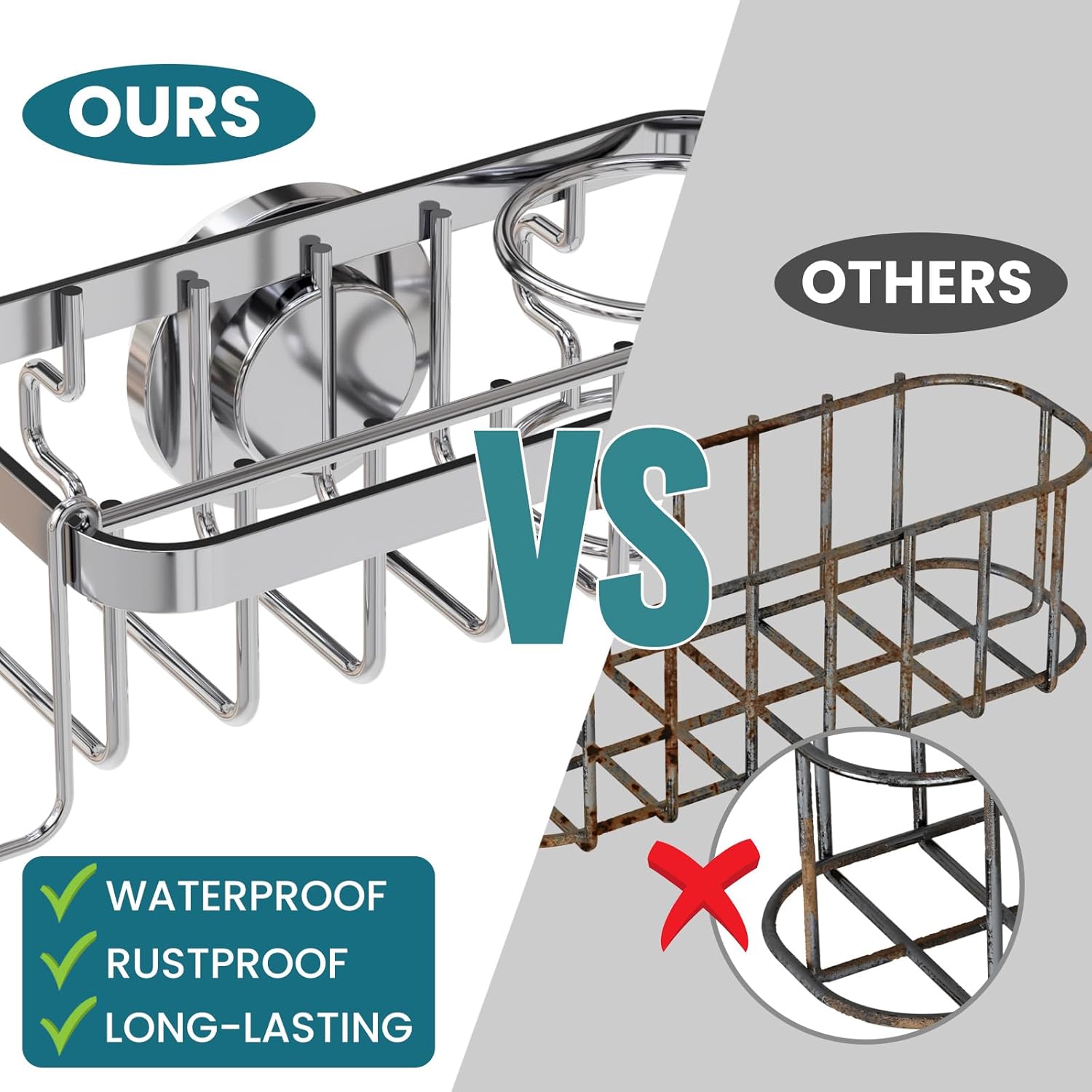 - [Durability & Strong Suction]: Comes with patened suction cup. The suction cup based on the bionics octopus sucker principle is made of TPE material, which hold up to 11 lbs. The sponge holder for kitchen sink and the sucker are water resistant so they can be used in wet areas such as sink for many years
