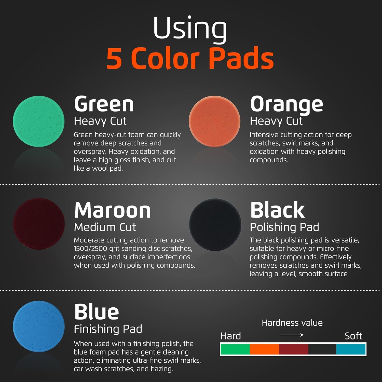 - 🌟【Revive Your Vehicle's Shine】: Transform your car's appearance with our complete car polishing kit. Includes 3 prime sponge cutting pads and 2 Compound Polishing and finishing Pads for Car Detailing.