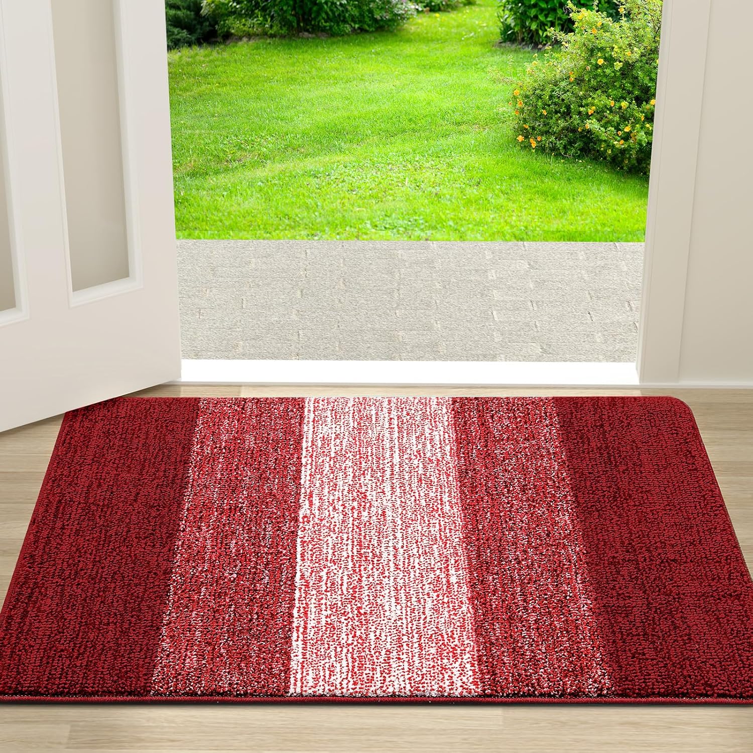 Kitinjoy Indoor Outdoor Door Mat, 30x17 Non-Slip Absorbent Dirt Trapper, Low-Profile Washable Inside Entrance Front Floor Mat, Sturdy Soft Entry Doormats for Entryway, Burgundy