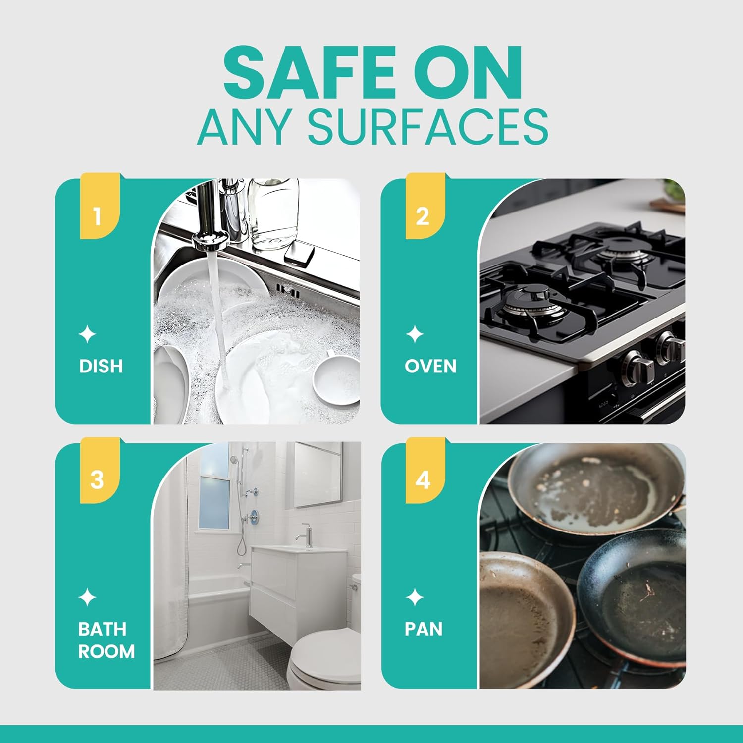 - NON-SCRATCH: Heavy duty non-scratch scrubbing surface, made of high-density absorbent sponge and reusable cellulose materials, non-toxic and long-lasting, super scrubbing fibers are plant-based, with nice cleaning ability, cleans tough jobs fast