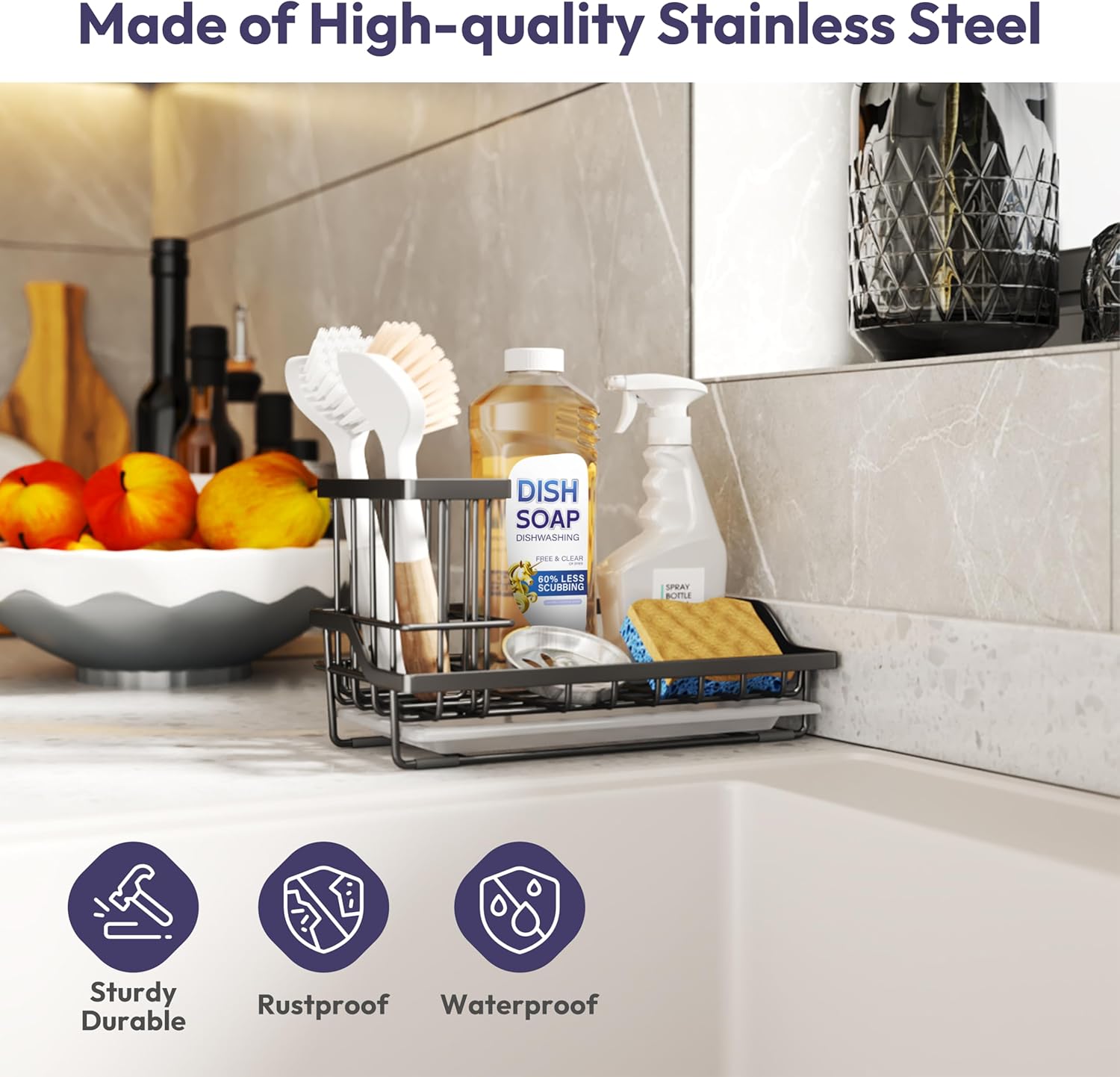 - [Sturdy & Rust-Resistant]: Made from high-quality stainless steel, our soap holder for kitchen sink is durable. Its sturdy construction ensures that kitchen sink organizer countertop can withstand daily use and resist corrosion and rust