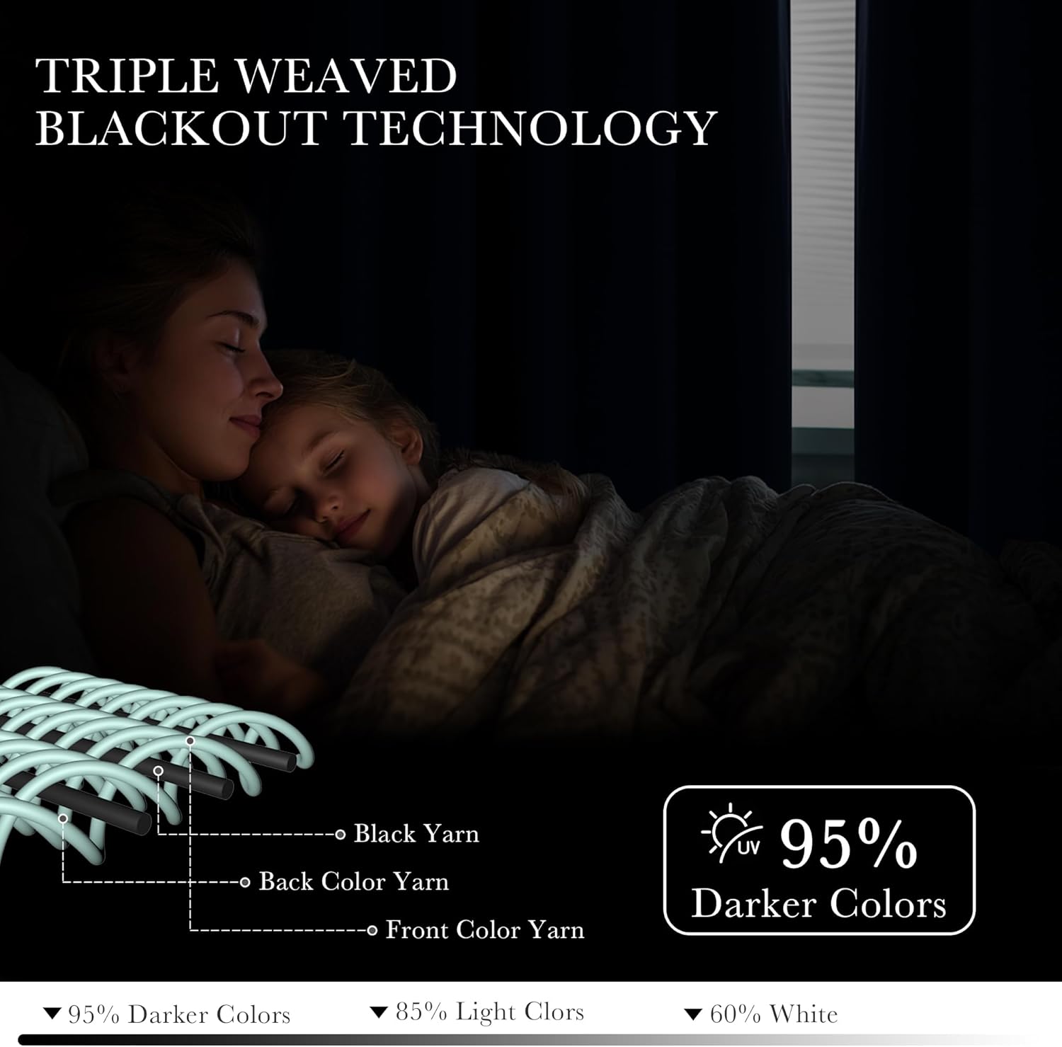 - LIGHT CONTROL - Adopt the triple weave technology, the heavy and soft fabric can prevent harsh sunlight and UV ray from passing through the windows. Dark color works better than the light one