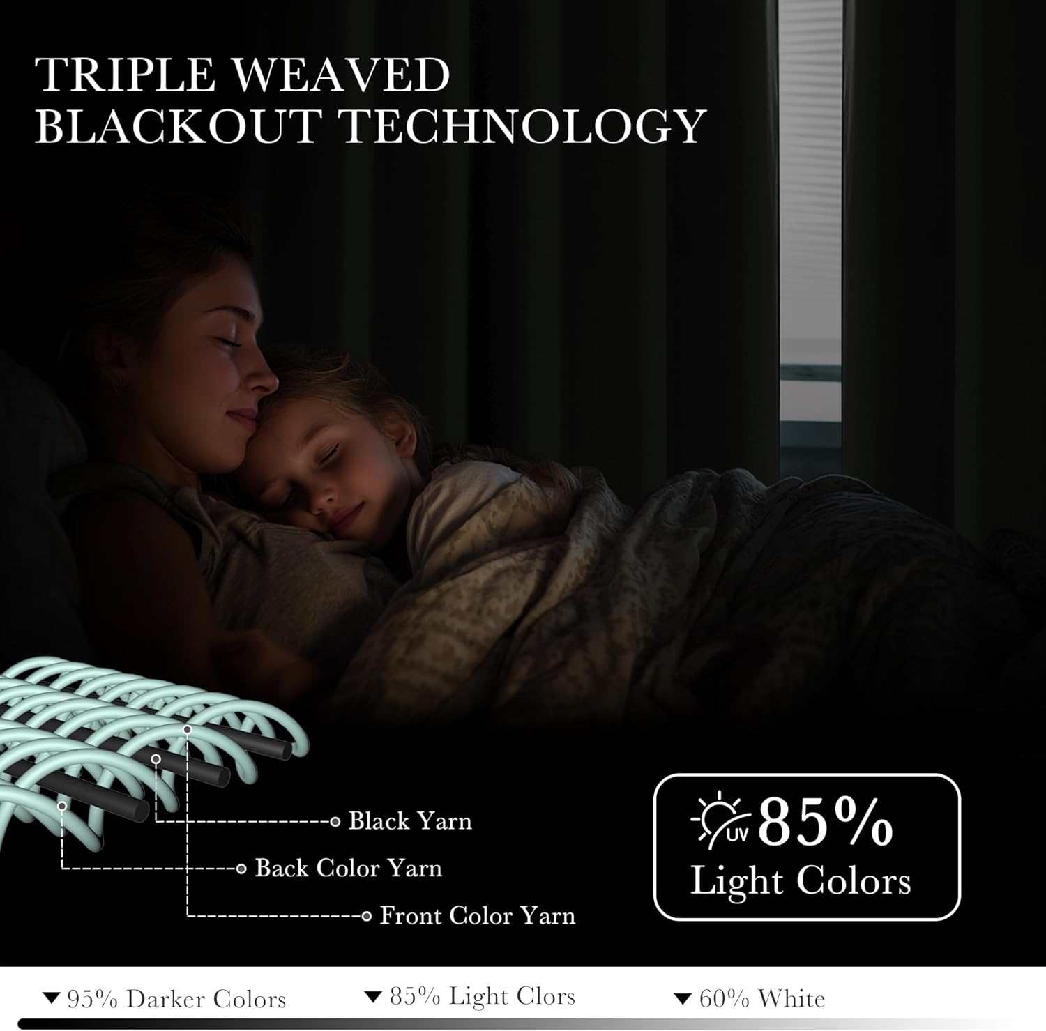 - LIGHT CONTROL - Adopt the triple weave technology, the heavy and soft fabric can prevent harsh sunlight and UV ray from passing through the windows. Dark color works better than the light one