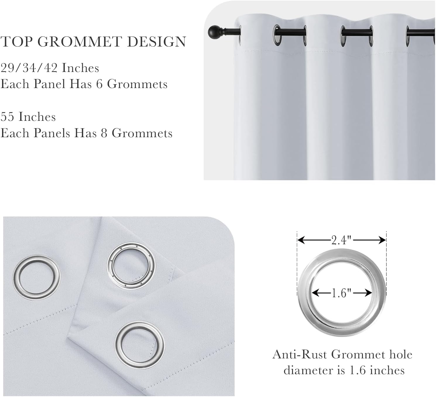- READY MADE - 2 panels include, each measures W55" x L94", 8 silver grommets(1.6" inner diameter) fit most standard rods. For proper fullness, panels should measure 1.5-2.6 times the width of your window