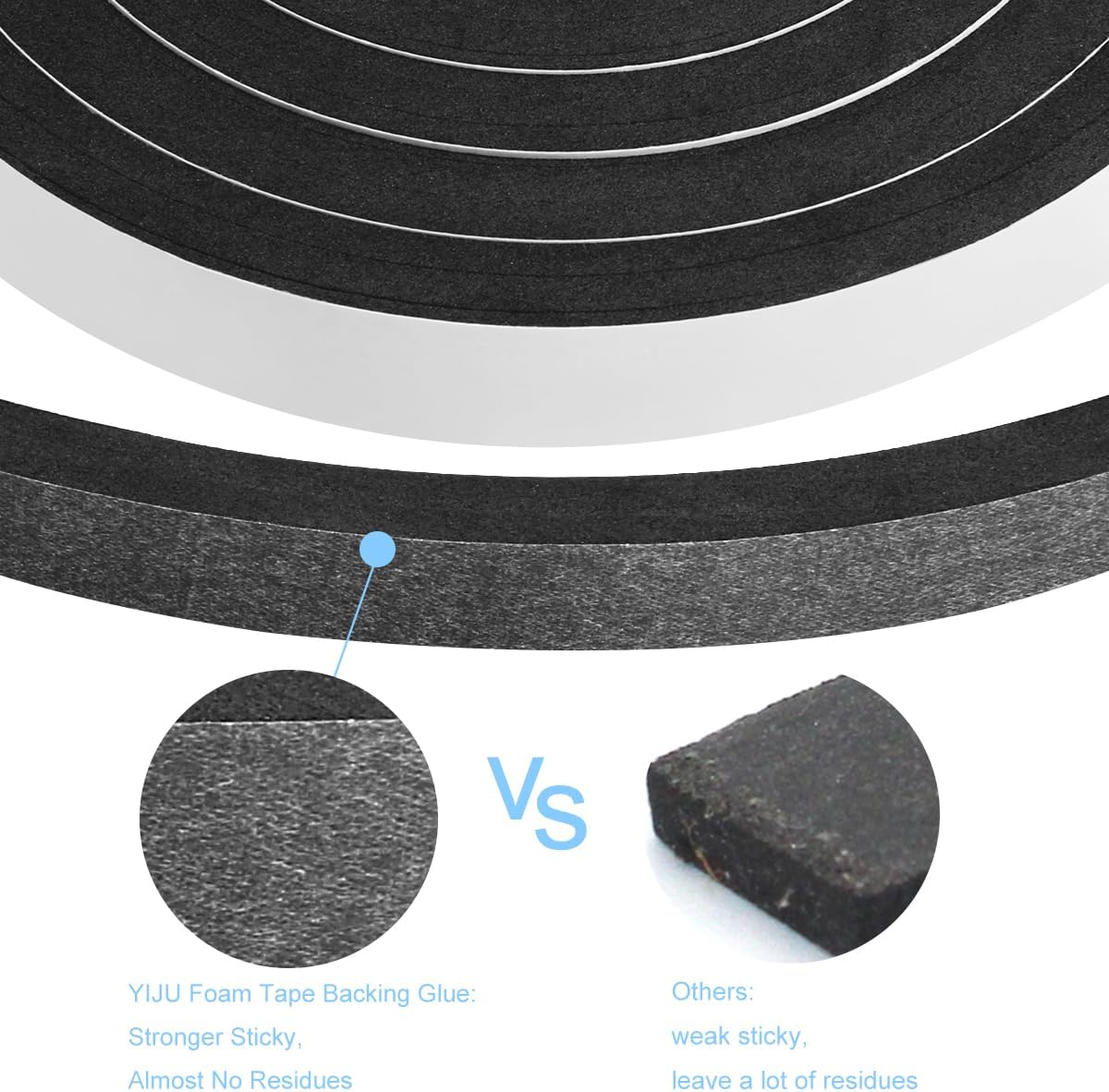 - 【STRONGER BACKING GLUE】-This self adhesive foam weather strip use strong single sided adhesive,but easy to remove and no residue,non- degumming,adhesive to various materials.