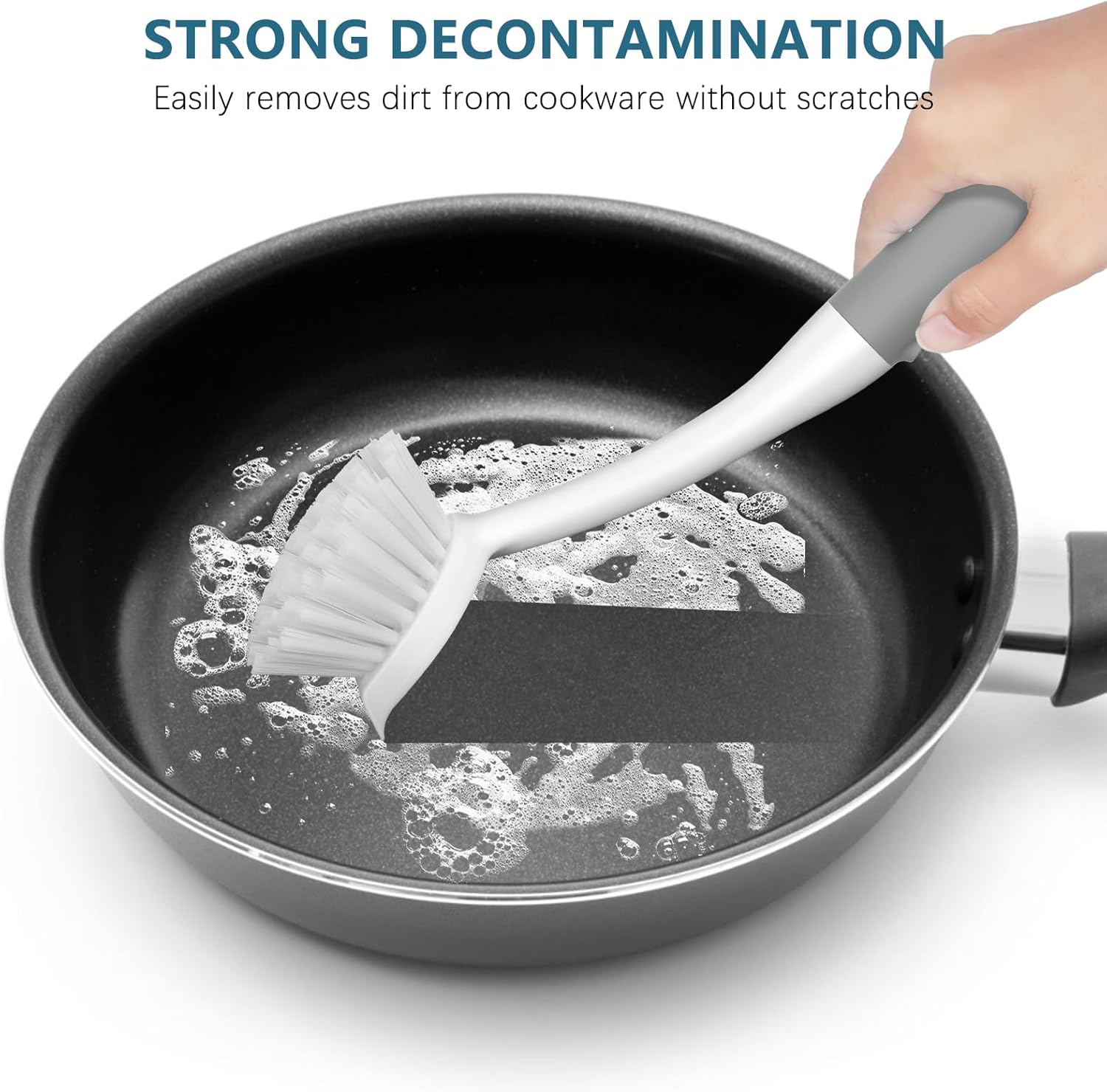 - NON-SLIP HANDLE: The kitchen dish brush is with ergonomic design and the handle has built-in non-slip rubber, which is not easy to slip off and effortless to use. Besides, it can protect your hands. Form now on, doing housework is pleasant job for you