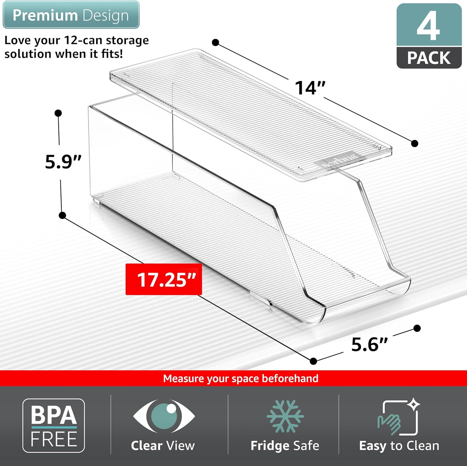 Sorbus Soda Can Organizer for Refrigerator – Stackable Can Dispenser with Lid for Fridge, Pantry, or Freezer – Holds 12 Cans Each, BPA-Free Clear Drink Organizer (4-Pack)