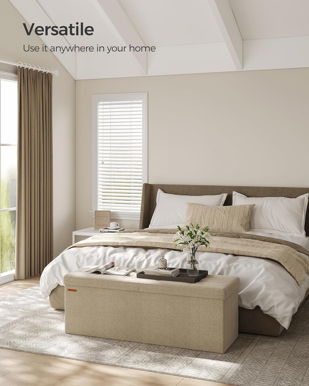 - ăQUICK ASSEMBLY, EASY FOLDAWAYăThis storage ottoman from the SONGMICS MAZIE Collection has a foldable design that allows quick setup in seconds by simply inserting the bottom panel. Easily fold and store it under the bed or in a closet when not in use
