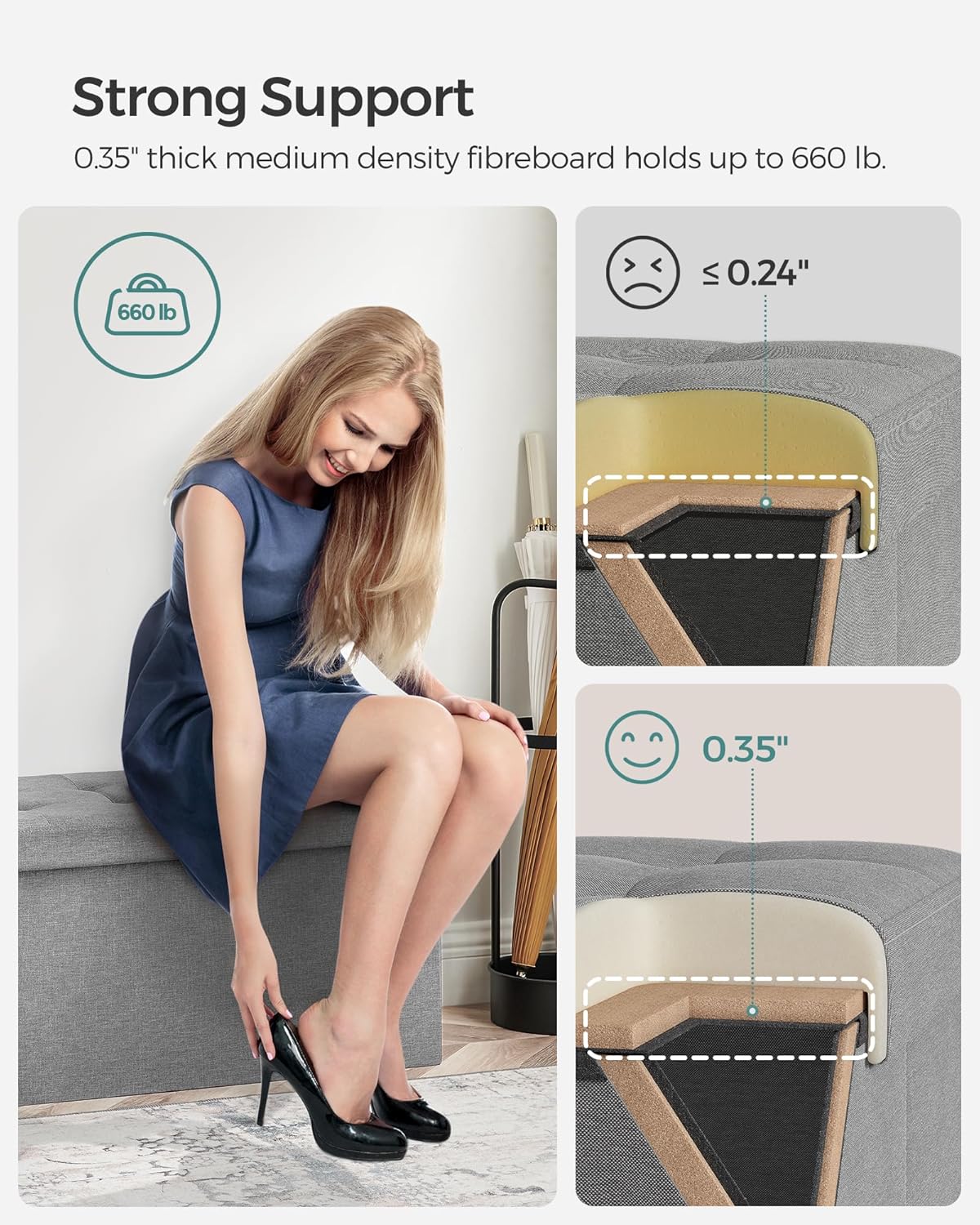 SONGMICS Mazie Collection - 30 Inches Storage Ottoman, Foldable Storage Bench with Flipping Lid, 660 lb Load Capacity, for Entryway, Living Room, Bedroom, Light Gray ULSF41G