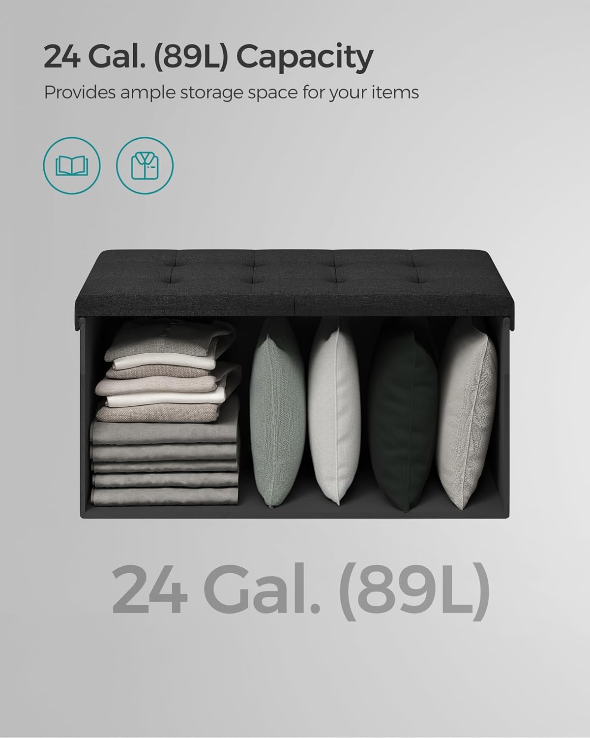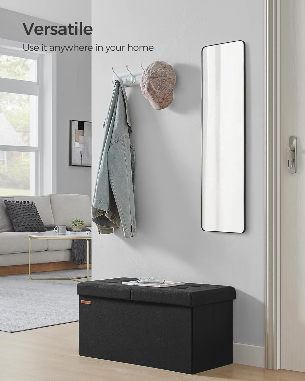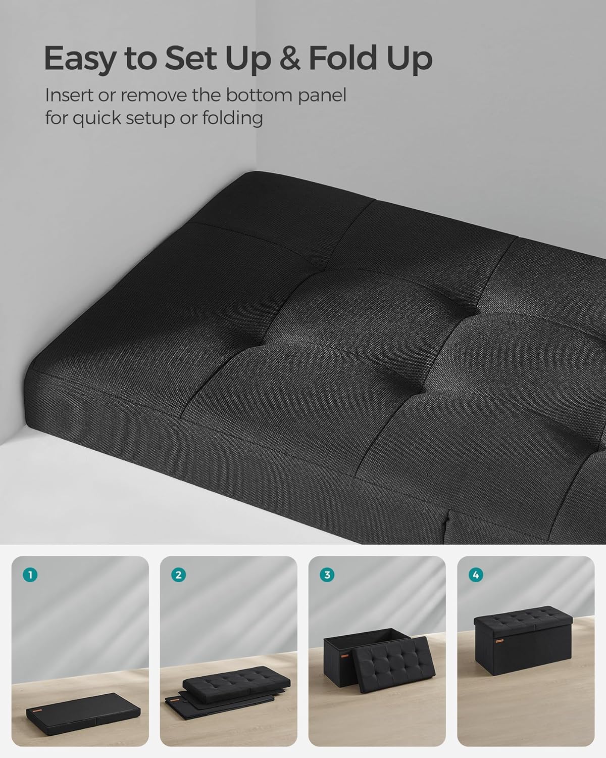 SONGMICS Mazie Collection - 30 Inches Storage Ottoman, Foldable Storage Bench with Flipping Lid, 660 lb Load Capacity, for Entryway, Living Room, Bedroom, Ink Black ULSF046B01
