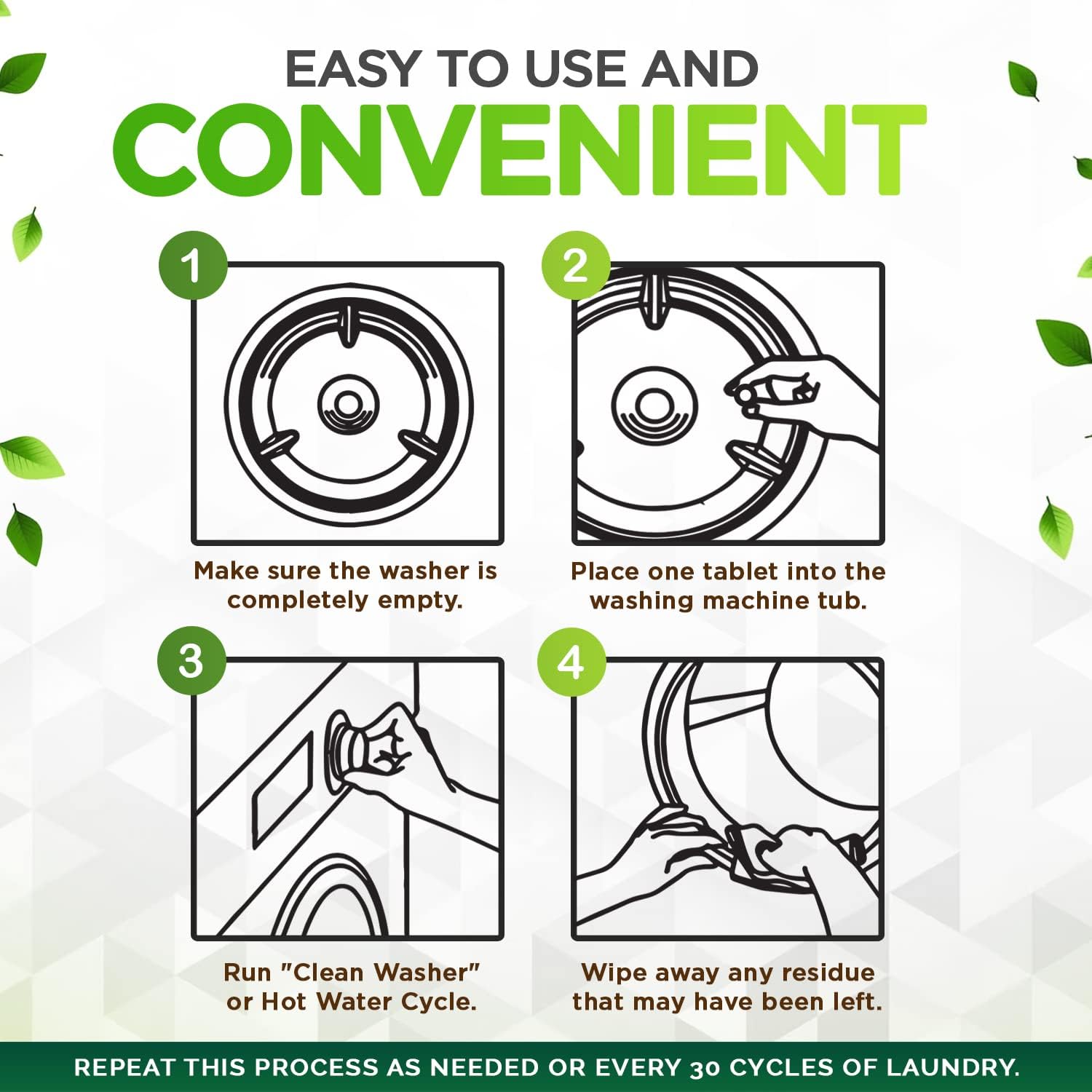 - Heavy-duty time release effervescent tabs dissolve slowly for maximum efficiency, removing build up and odor causing residue. Deodorize and enhance your washer's lifespan. Deeply cleans inside pump, drum, tub, valve, agitator, filter and hose.