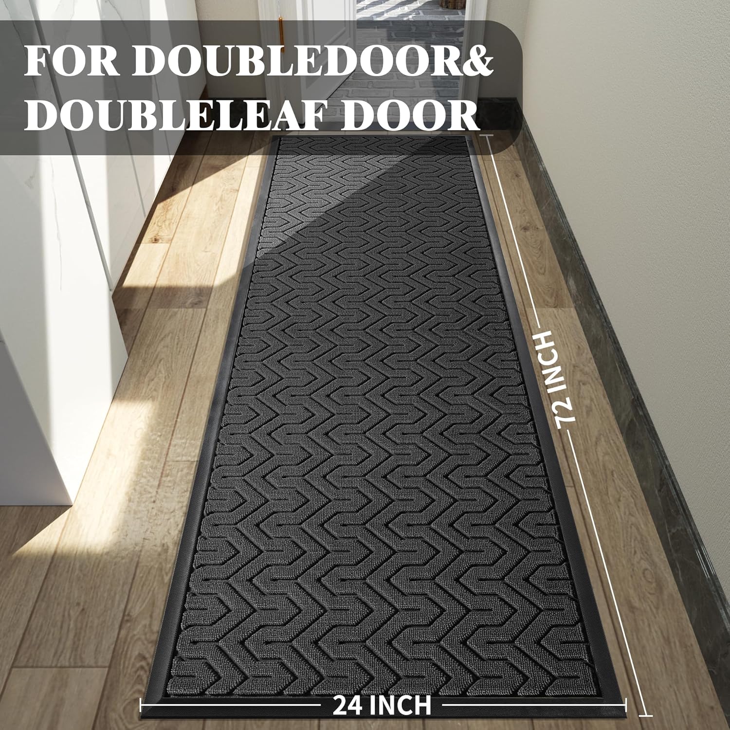Yimobra 72x24 Indoor Outdoor Runner Rug, Heavy-Duty Waterproof Entrance Mat for High Traffic Areas, Commercial Grade Welcome Door Mat, Easy Clean, Black