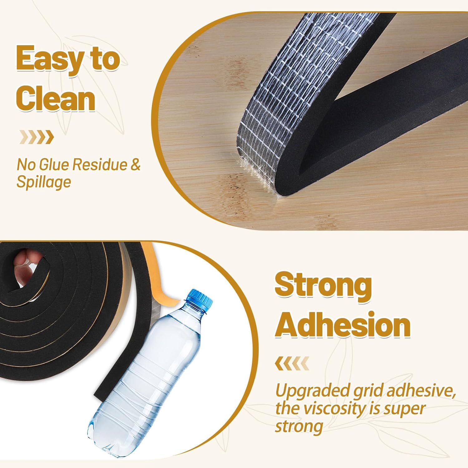 - STRONG ADHESION - Compared with most foam seal strips on the market, our weather stripping is UPGRADED version, its strong grid adhesive backing makes it stick firmly on the surface. It’s waterproof, non-degumming and won’t fall off easily.