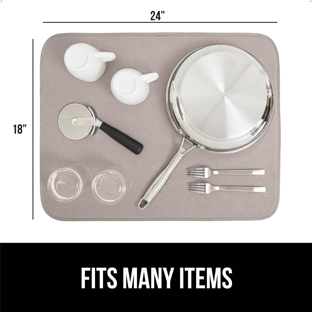 GORILLA GRIP Ultra Water Absorbent Microfiber Dish Drying Mat, 18x24, Quick Dry Thick Mesh, Slip Resistant Pad for Sink Dishes or Under Rack, Kitchen Counter Accessories, Machine Wash Mats, Almond