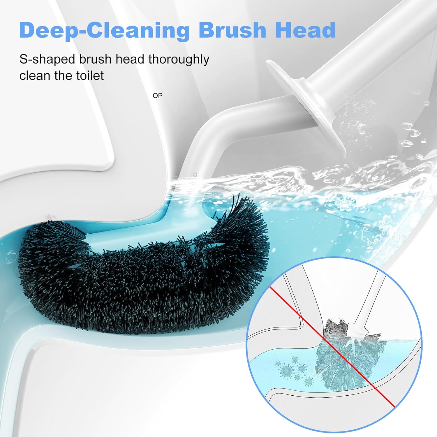 - CURVED DESIGN SCRUBBER: Our toilet brushes have specially S-shaped design that easily reach hard-to-clean areas,they can get up under the rim of the and down to the hole. The brushes bristles are very flexible and long-lasting to and debris without hurting the glaze. It's ideal for keeping the bowl clean and fresh and you will get two brushes and holders