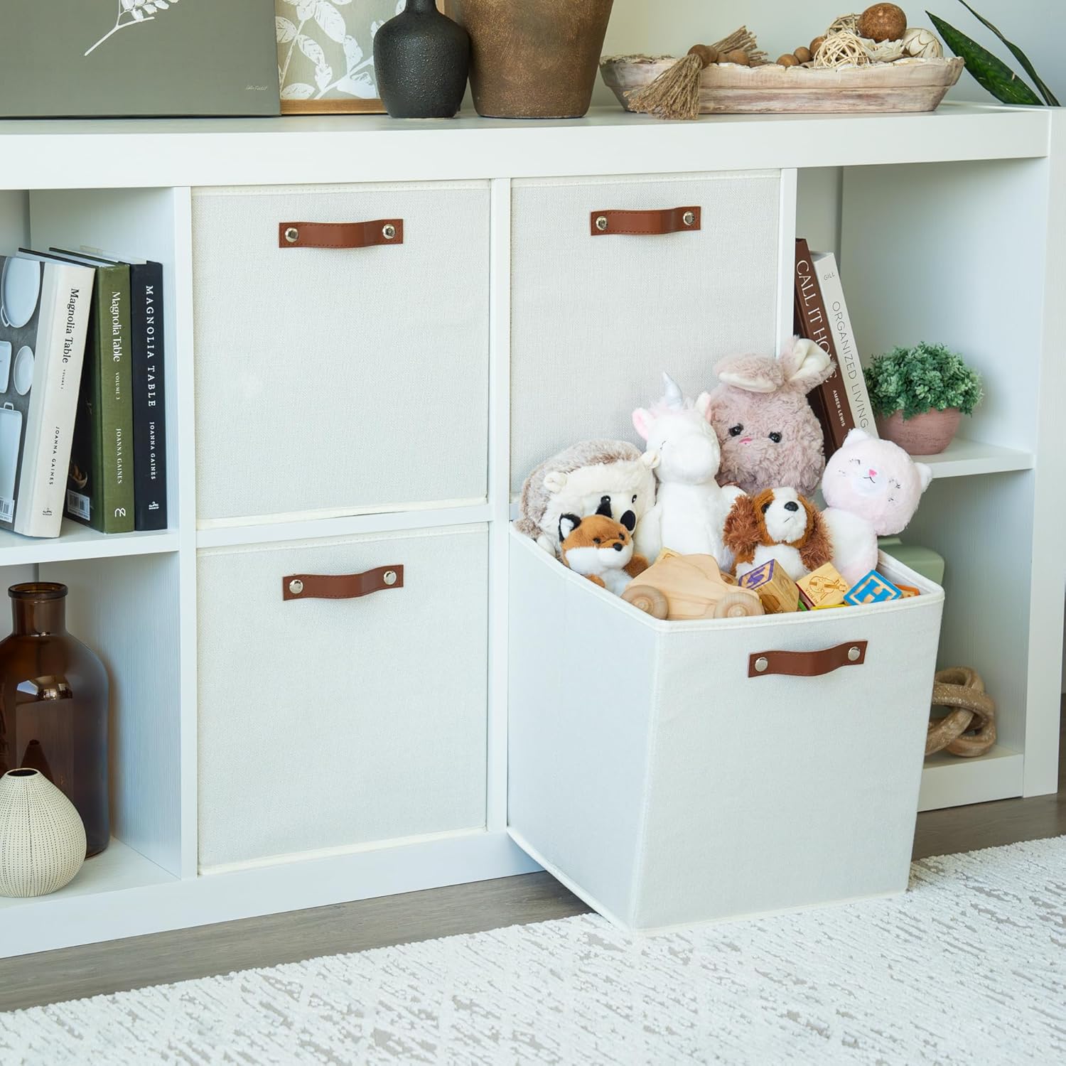 OrganiHaus 13x13 Cube Fabric Storage Bins Set of 4, Fabric Storage Cubes w/ Vegan Handles, 13 inch Collapsible Bins for Clothes & Toy Organizer, Cubbies Organizer, 13x13 Basket for Decor - White