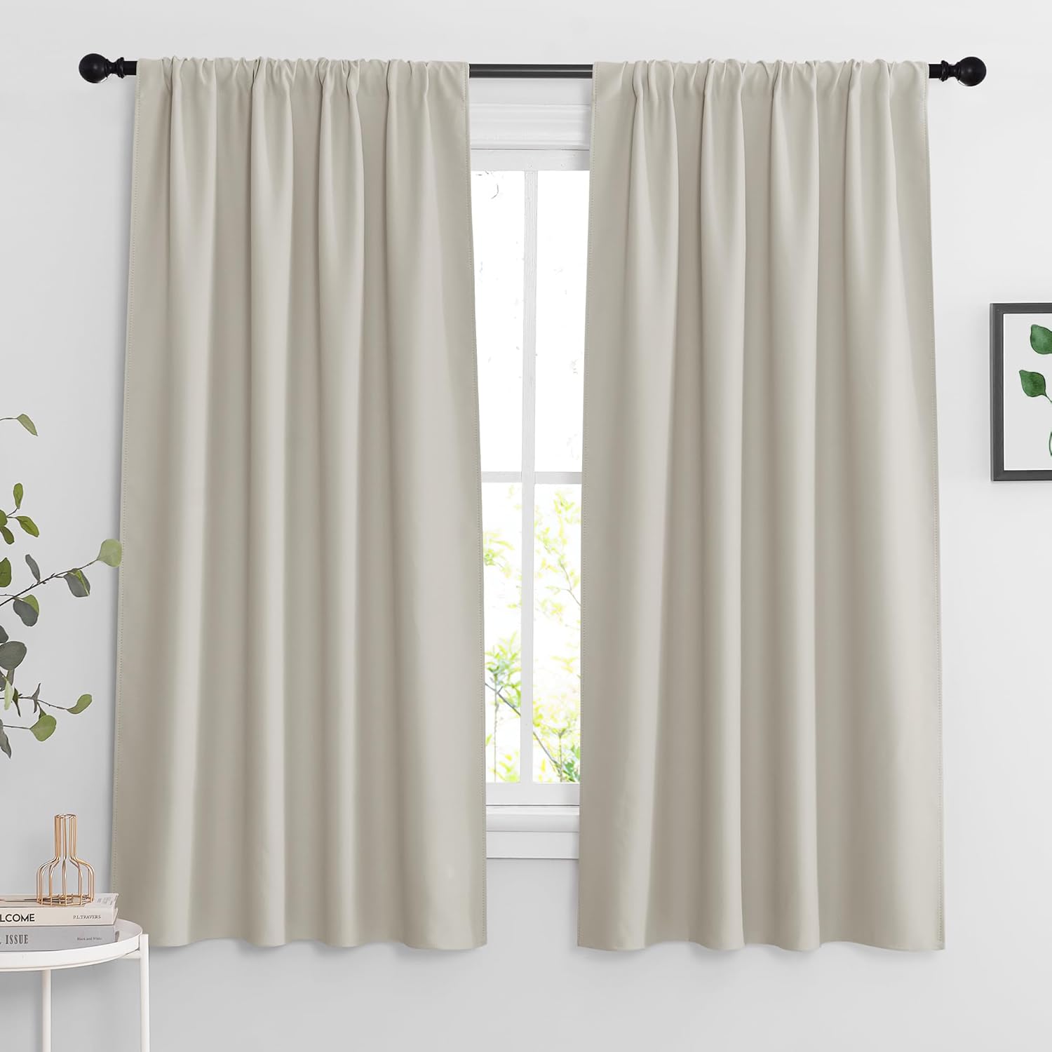 RYB HOME Blackout Curtains for Bedroom, Window Shades Thermal Insulating Privacy Drapes for Living Room Classroom Kitchen Bathroom Dining, Wide 42 x Long 63 inch, Natural 2 Panels