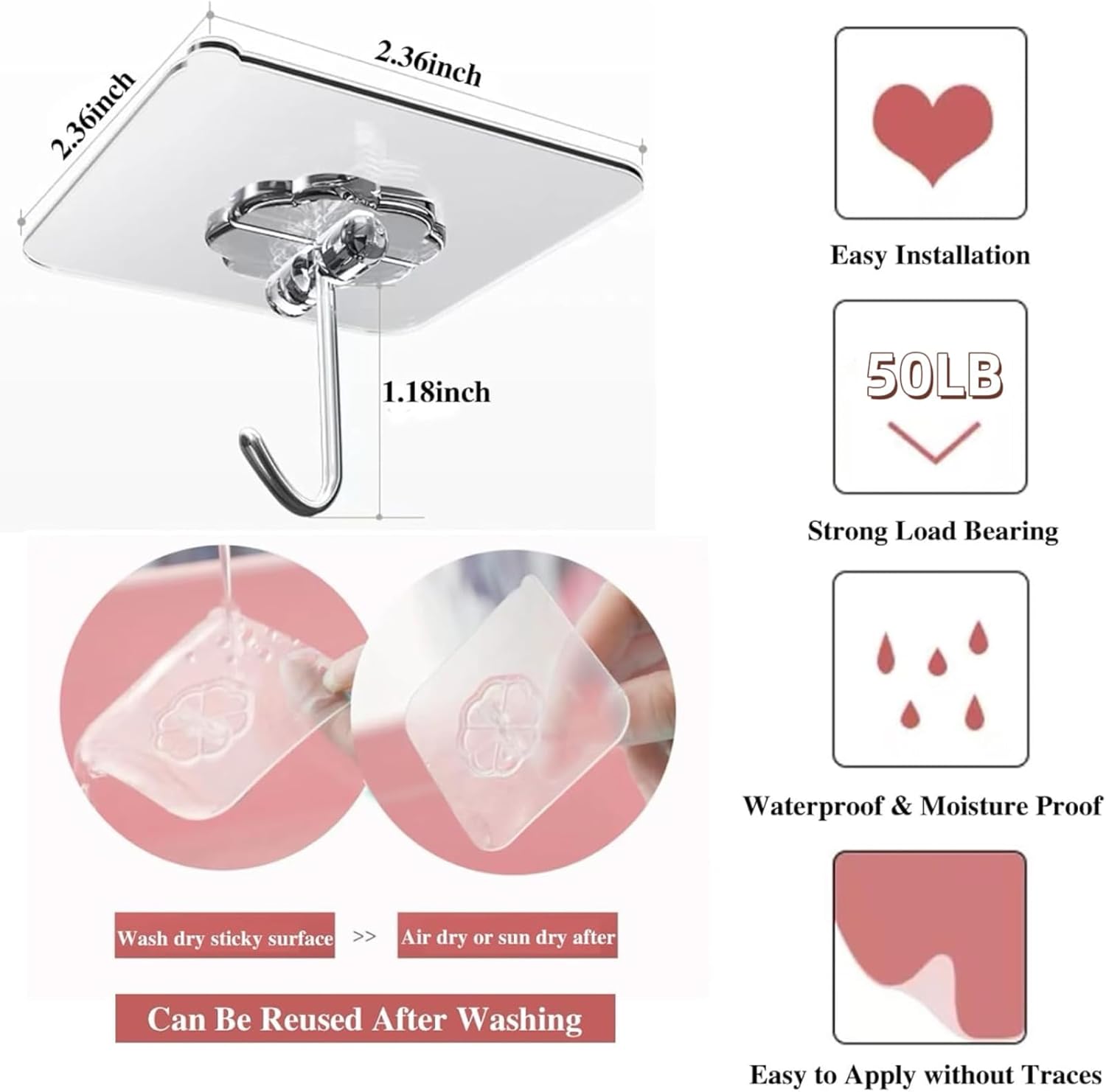 - Perfect Appearance: The adhesive hooks unique transparent design makes it almost undetectable, hooks for hanging heavy duty is perfect for indoor and outdoor decorative applications! Especially suitable for hanging shower or bath accessories in the bathroom or for hanging kitchen utensils and tools on a tiled backsplash