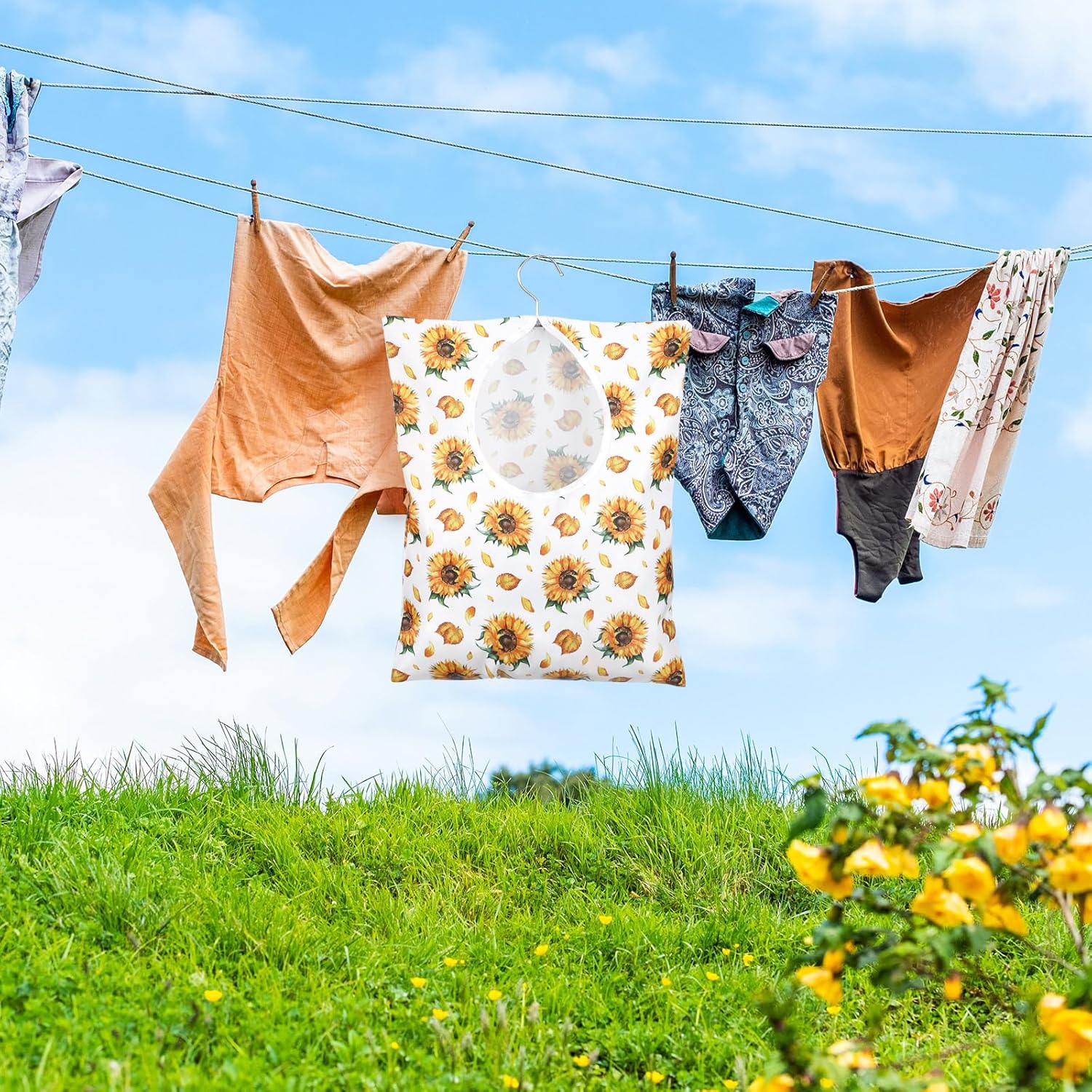 - Summer Theme: package includes 2 pieces of clothespin bags with hanger in different summer designs, one is decorated with sunflower pattern and white background and the other is decorated with sunflower pattern and black background, can add charm to your home; Proper quantity can satisfy your different daily use and replacement needs