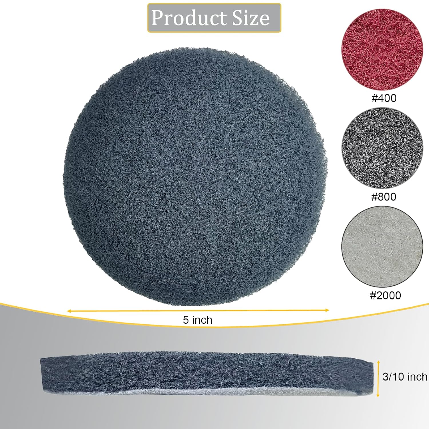- Optimal Dia Size&Grit: The scouring pads possess 5-inch dia and 0.3-inch thickness, available in 400, 800, and 1200 grits, ensuring various uses, be it for light cleaning or heavy-duty scrubbing.