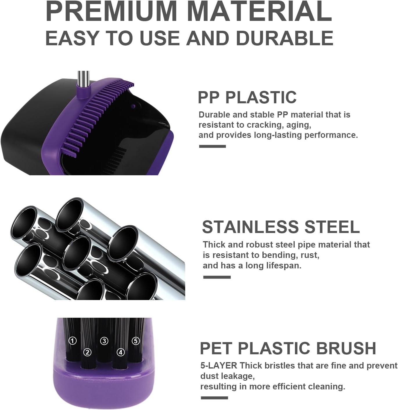- Hassle-Free Pet Hair Cleanup with Innovative Design: Thanks to the comb on the dustpan, removing pet hair from the broom is a breeze—no hands needed. This perfect combo is designed for quick and efficient clean-ups, especially in homes with cats and dogs. The broom and dustpan set with a long handle ensures pet hair is easily tackled, making cleanup a hassle-free experience.