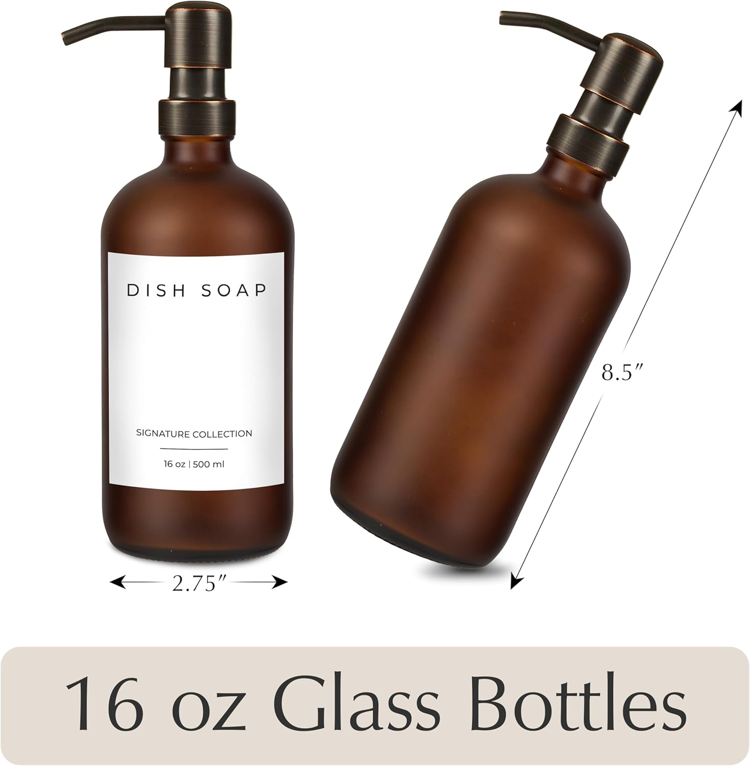 - ✅ KITCHEN OR BATHROOM USE: While other dispensers peel over time, our dispensers are made of premium quality and last far longer. The bathroom soap dispensers and kitchen soap dispenser set are 16 ounces and are refillable, requiring fewer refills. Ideal for using as a bathroom soap dispenser set and the glass soap dispenser with pumps boast 2 cc stainless steel pumps.