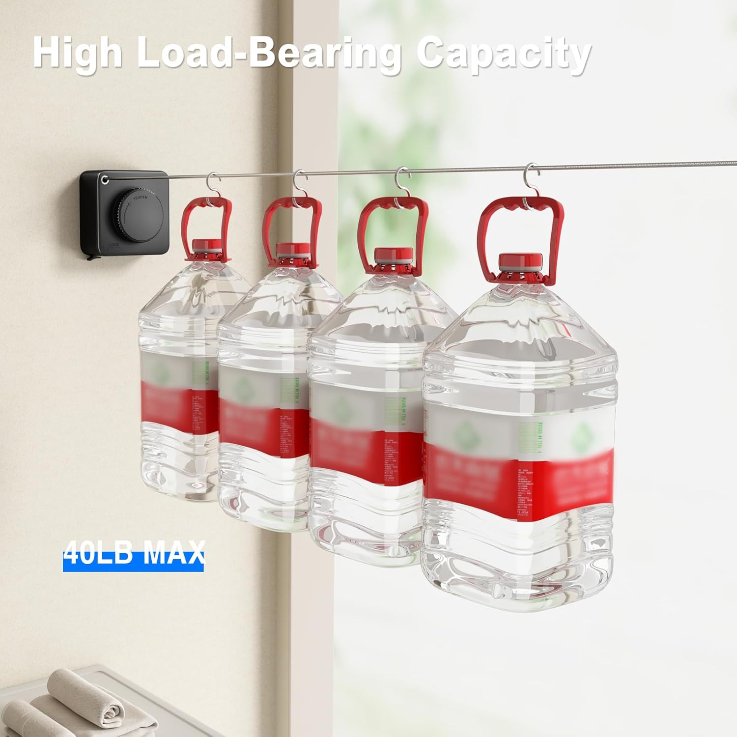 - 【Non-Sagging Design】The Retractable Clothesline is a non-sagging design, there is a locking device and a rotating tightenable device, when you hang a lot of clothes resulting in sagging, keep the locked state and then rotate to tighten the line can solve the problem of sagging. Such a very careful design is not available in others' clotheslines.