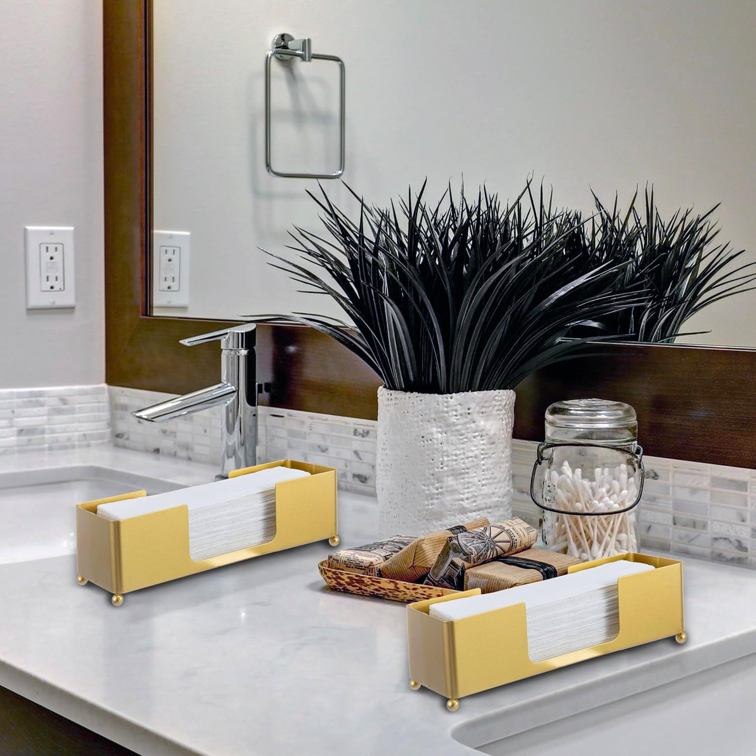 MyGift Modern Brass Tone Metal Tabletop Folded Hand Towel Holder, Commercial Countertop Tissue Dispenser Tray for Trifold, C-Fold and Z-Fold Towels, Set of 2