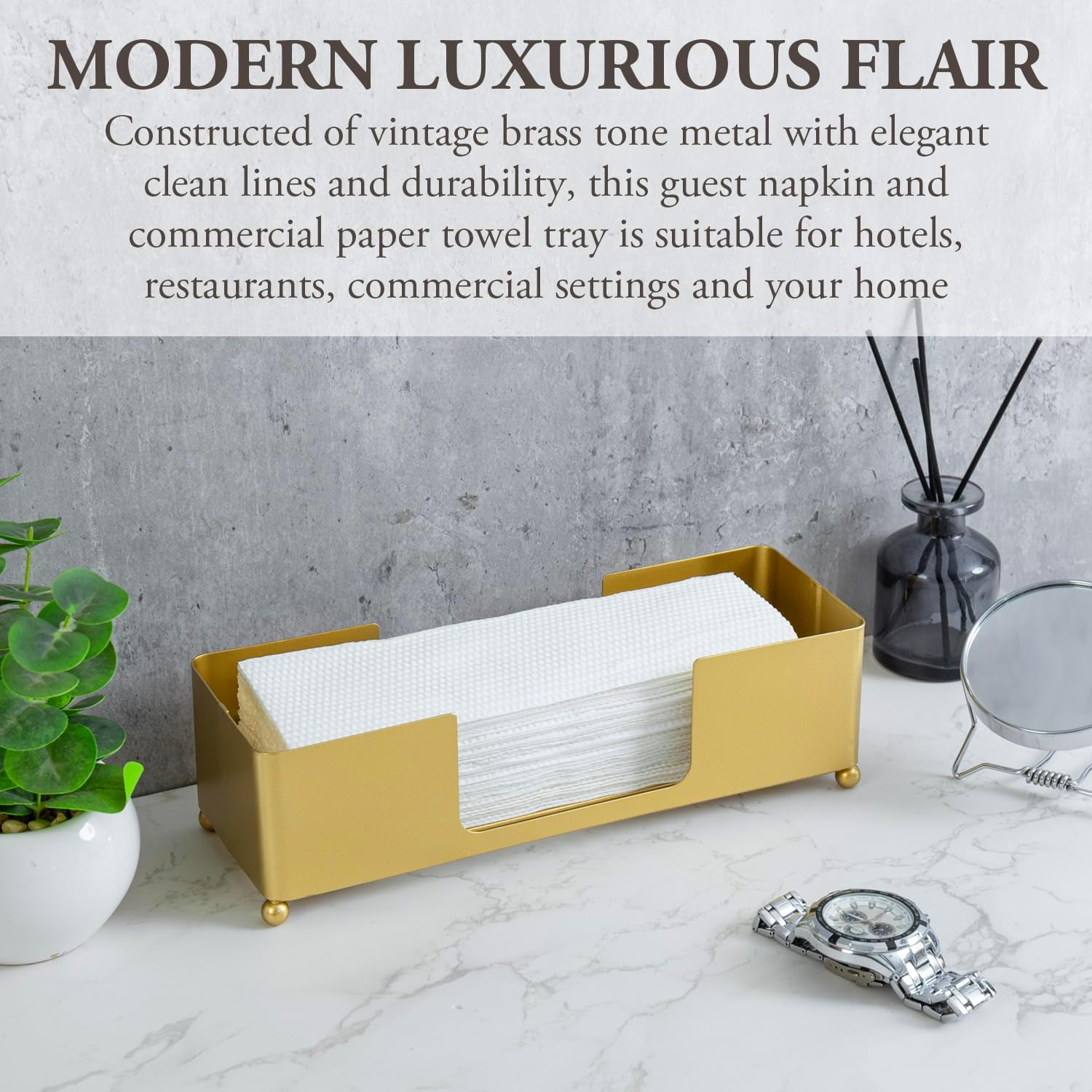 - Modern brass tone metal tabletop paper towel holder dispenser perfect for stylishly storing paper towels in any home, office, restaurant or retail bathroom setting