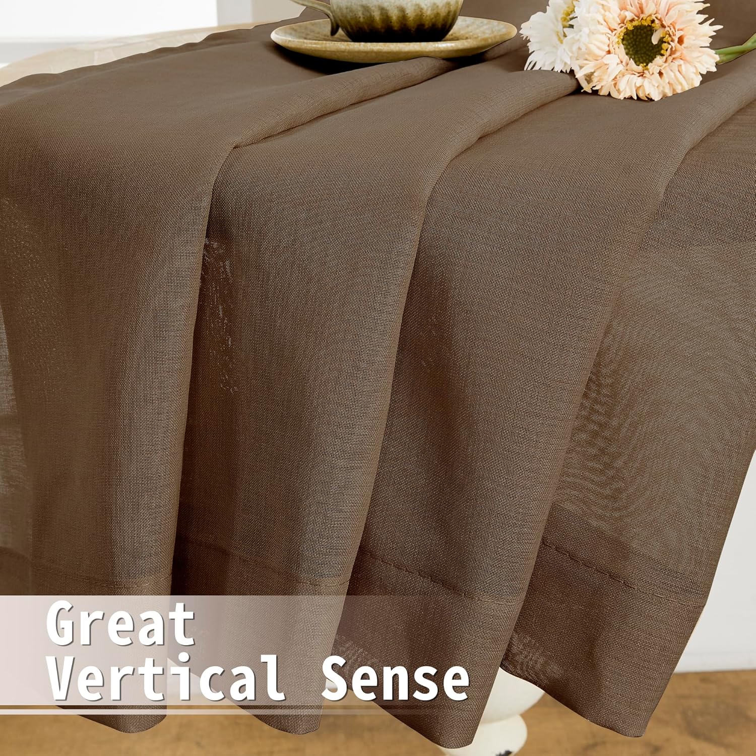 Tollpiz Small Sheer Door Curtain Closet Linen Textured Curtain Sheers Doorway Light Filtering Voile French Door Rod Pocket Curtains Patio Glass Door, 25 x 40 inches Long, Brown, Set of 1 Panel