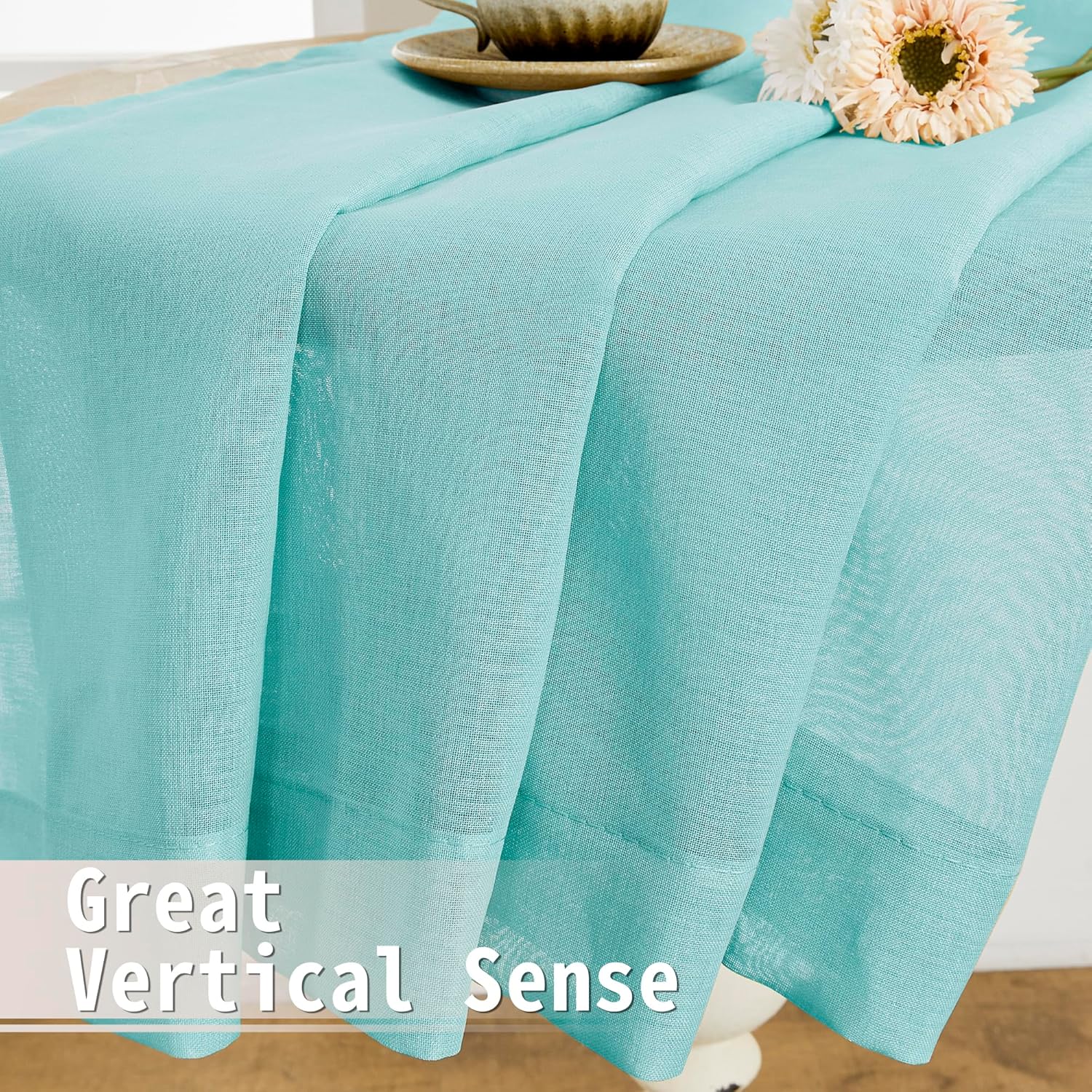 Tollpiz Sheer Curtains Closet Linen Textured Curtain Sheers Doorway Light Filtering Voile Patio Glass Door Rod Pocket Curtains French Door, 54 x 80 inches Long, Crystal Blue, Set of 1 Panel