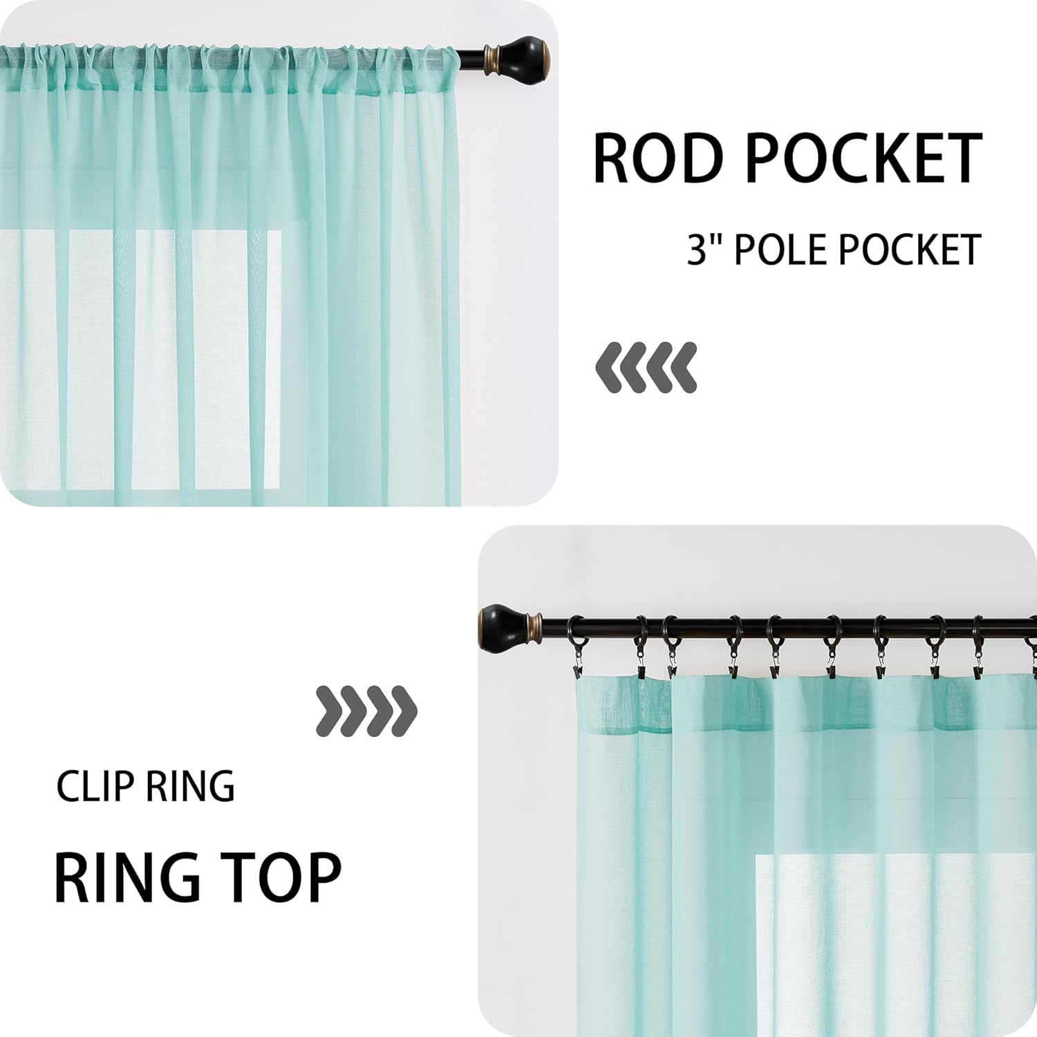 Tollpiz Sheer Curtains Closet Linen Textured Curtain Sheers Doorway Light Filtering Voile French Door Rod Pocket Curtains Patio Glass Door, 54 x 63 inches Long, Crystal Blue, Set of 1 Panel