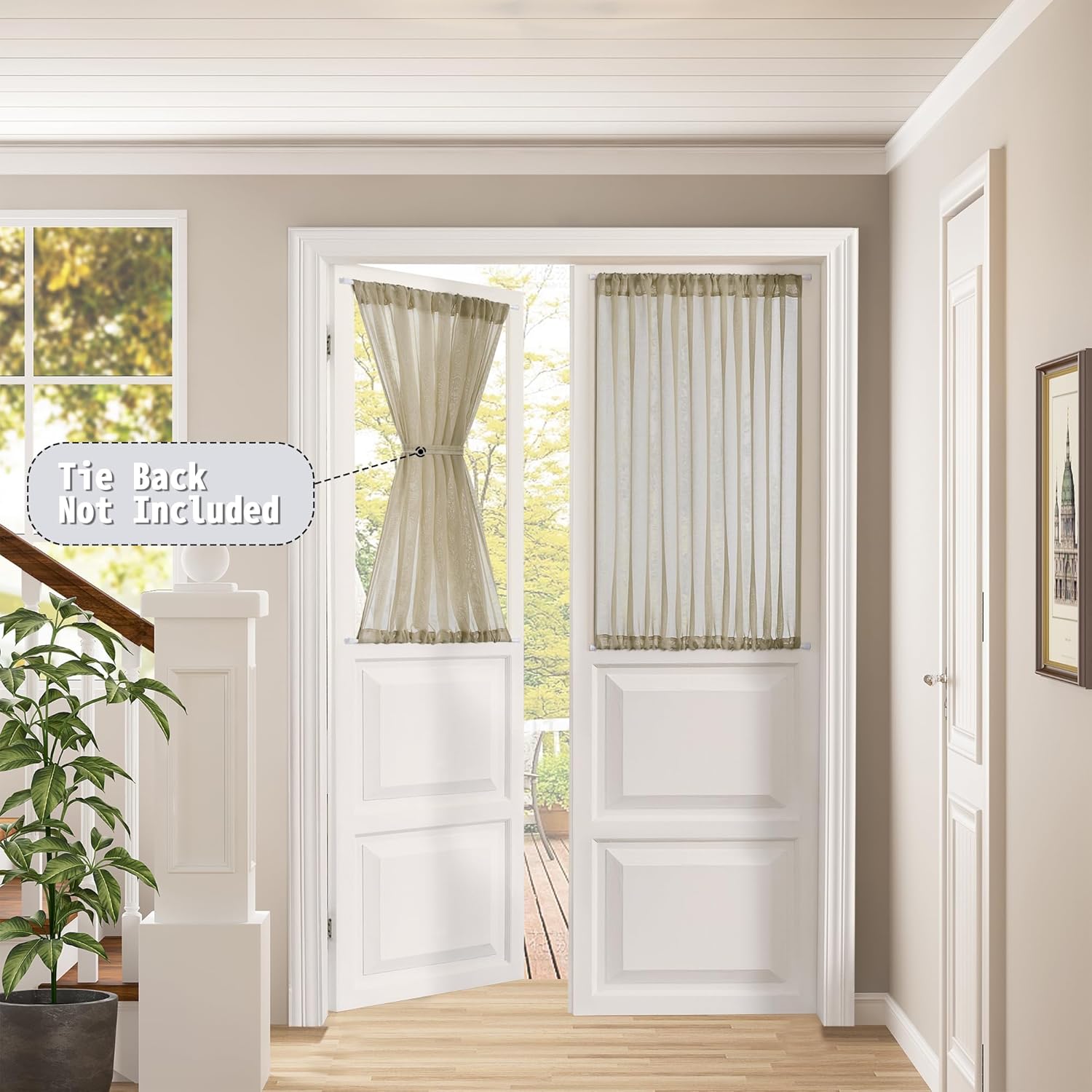 - Light Filtering: The linen look taos taupe door sheer curtain can allow the right amount of natural light through to bring your room a hazy and softer vision, keep you away from someone’s glance from outside and provide you some privacy.