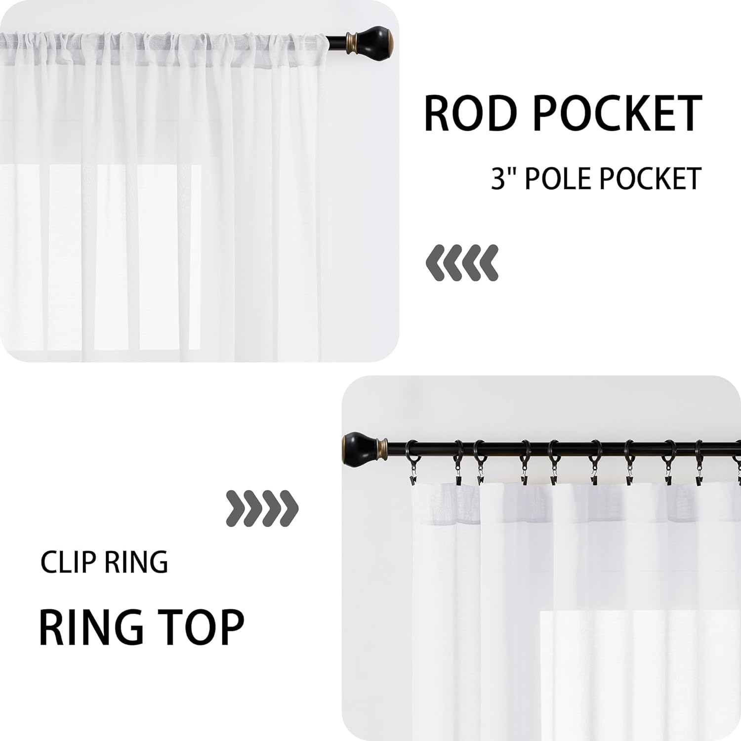 - Package Included: Sold as 1 sheer curtain panel. Each unfolded panel measures 54” width by 40” length. With 3" pole pocket are our curtains suitable for the most of curtain rod also easy to slide, and 2” bottom hem makes each panel drape well.