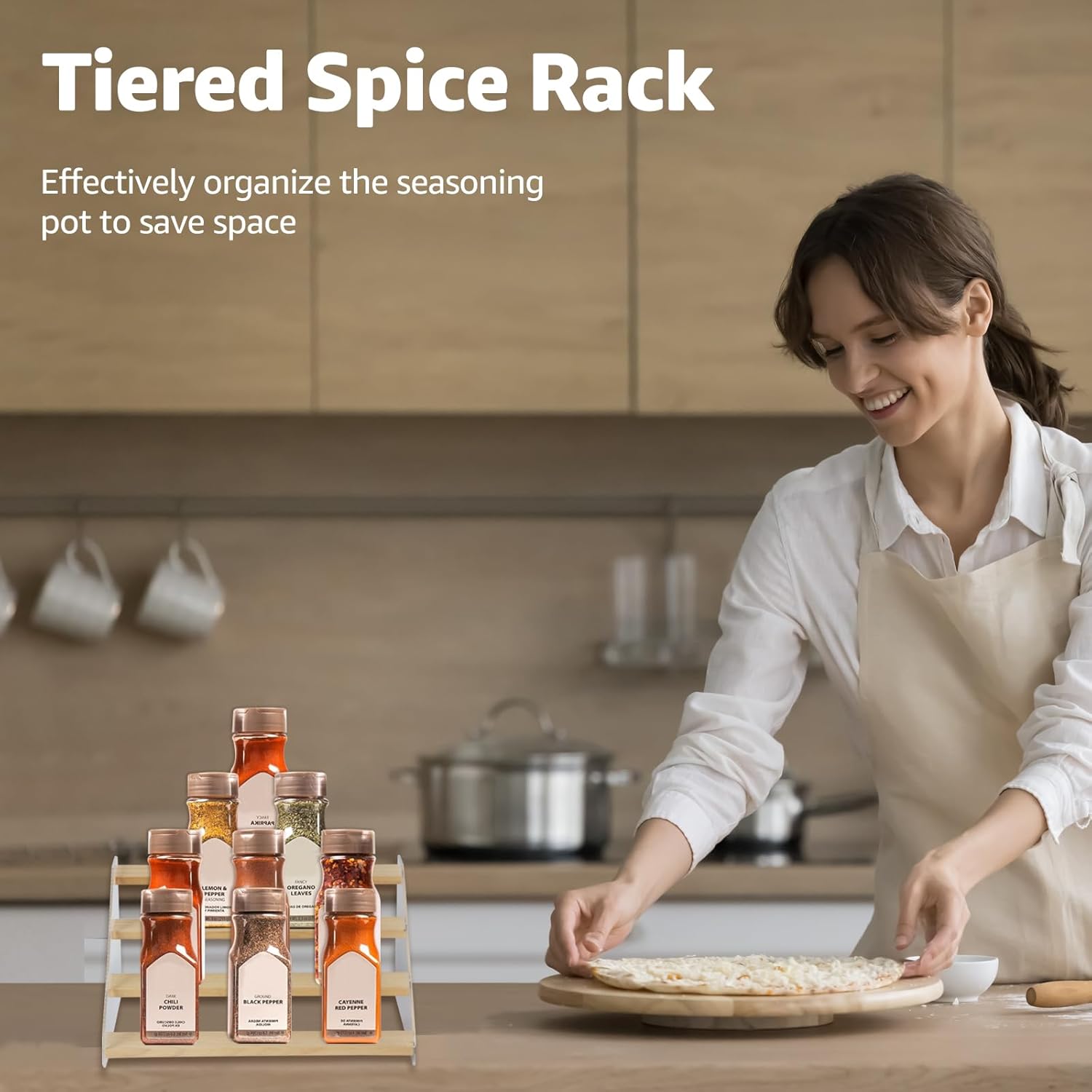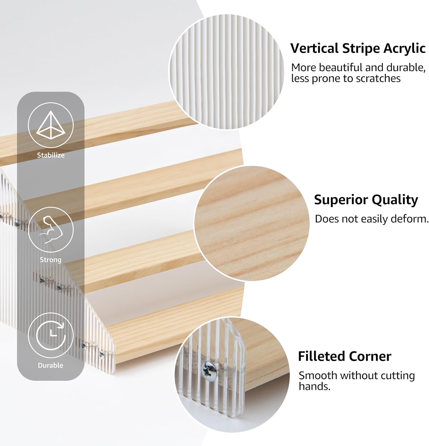 - Elegant & Sturdy: Risers display stands constructed from high-quality pine wood and corrugated acrylic, making it both aesthetically pleasing and fashionable, as well as durable and resistant to deformation, the spice shelf is a beautiful and robust addition to any space