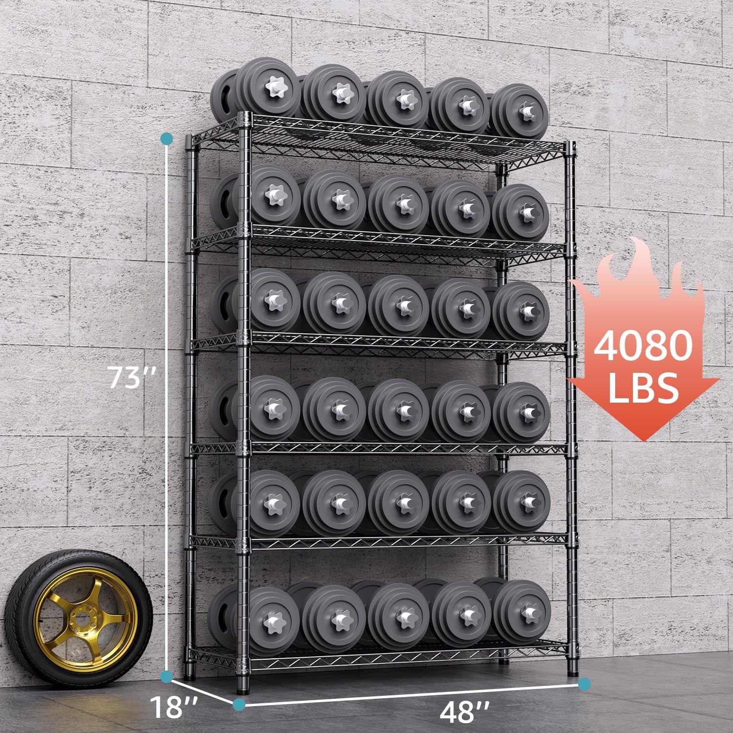 4080 lbs Steel Storage Shelving 6-Tier Utility Shelving Unit Steel Organizer Wire Rack for Home,Kitchen,Office,Garage, 17.7" D x 47.2" W x 72.3" H