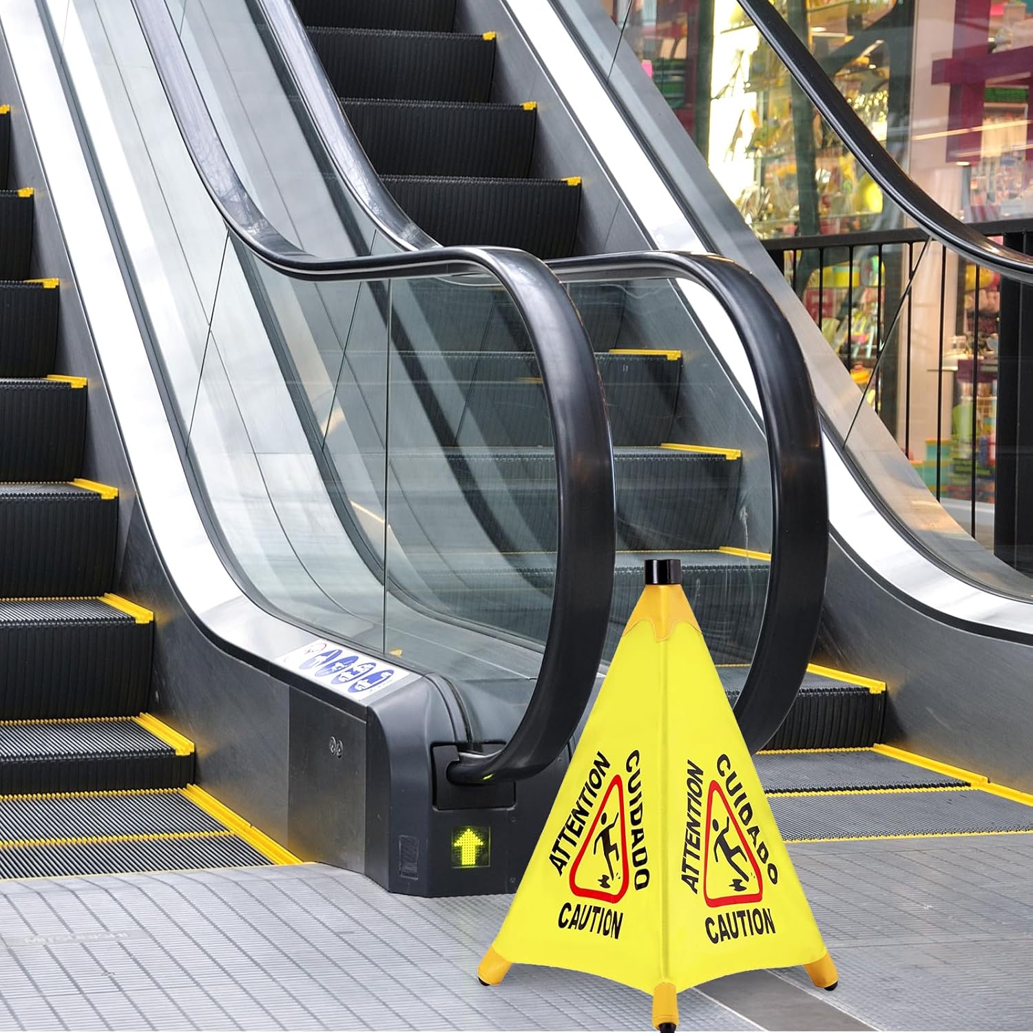 - Easy to Move and Store: this floor safety sign features a pop up triangle design, lightweight, portable, and a pop up foldable design for easy storage; You can fold it up when not in use and put it in the included box to save storage space
