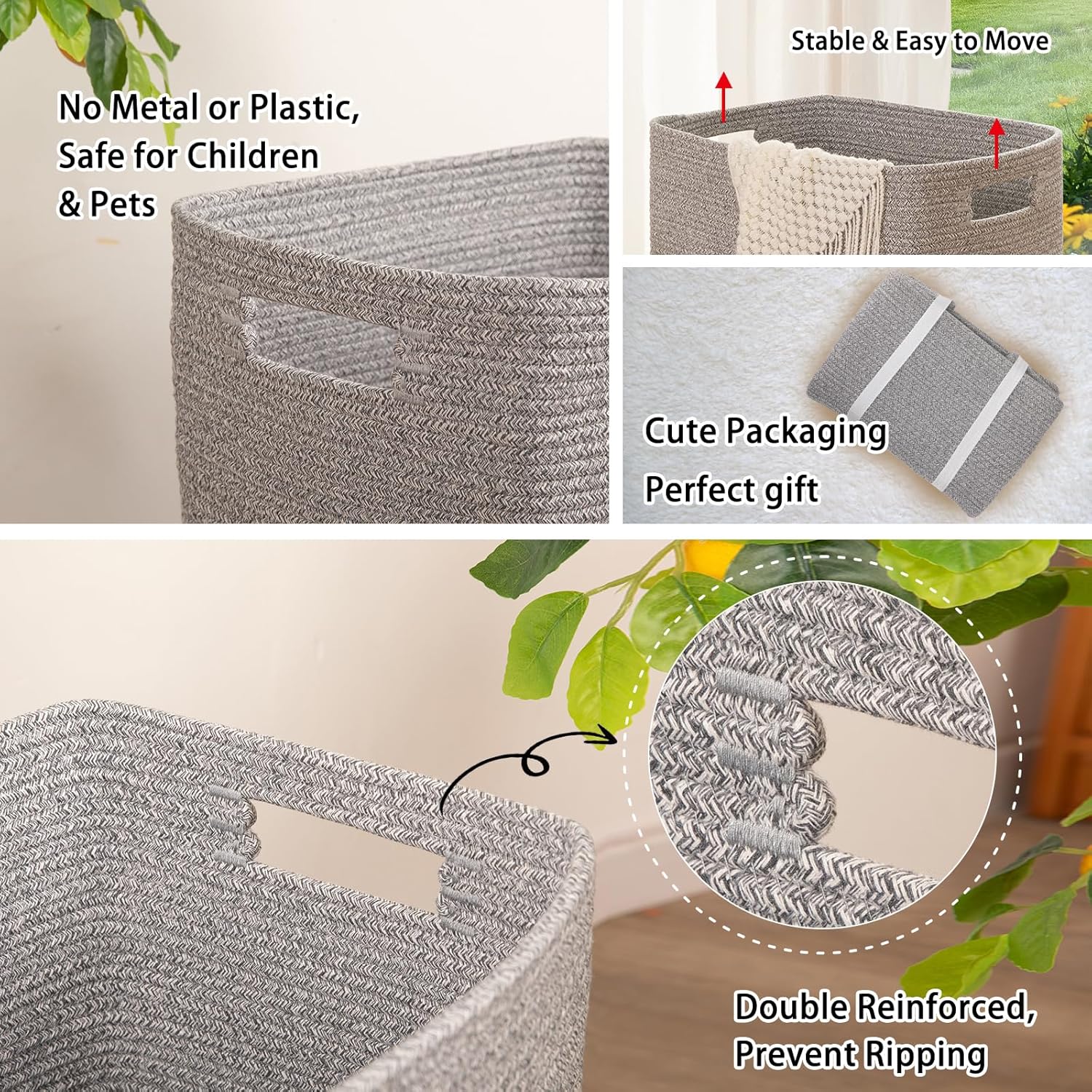 - Double Reinforced Handles:We use the highest grade cotton rope as raw material and all the stitches are distribution and fine,which makes the baskets better wear resistance and durability to be used for many years.In addition,each large basket features thick,double stitching around the handles to prevent ripping and keep its shape,never fall off