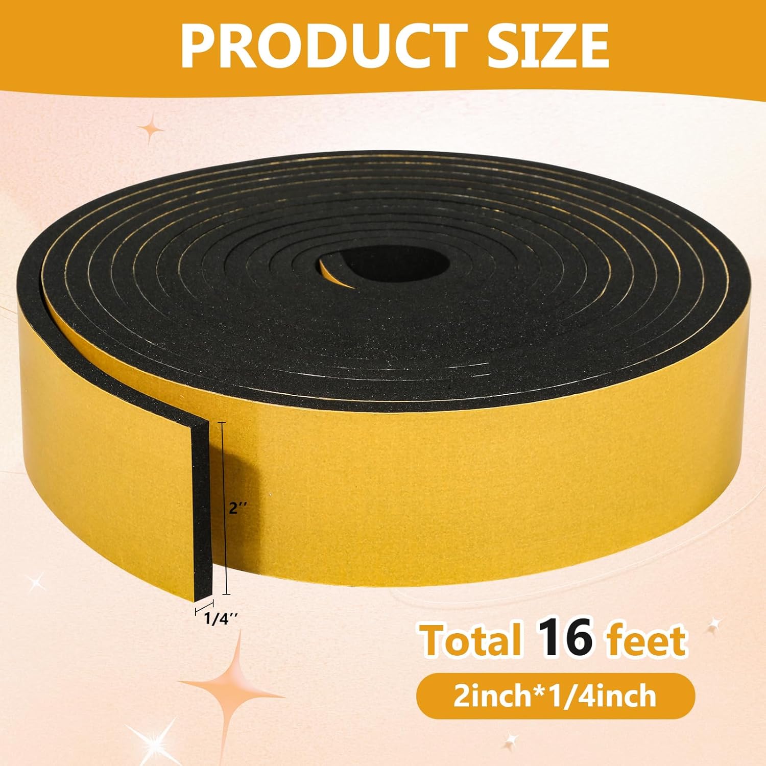 Weather Stripping Seal (2 Inch X 1/4 Inch) for Door Window, 16Feet High Density Foam Tape, Soundproofing, Insulation Strip, Door Sealers for Door Frame- Black